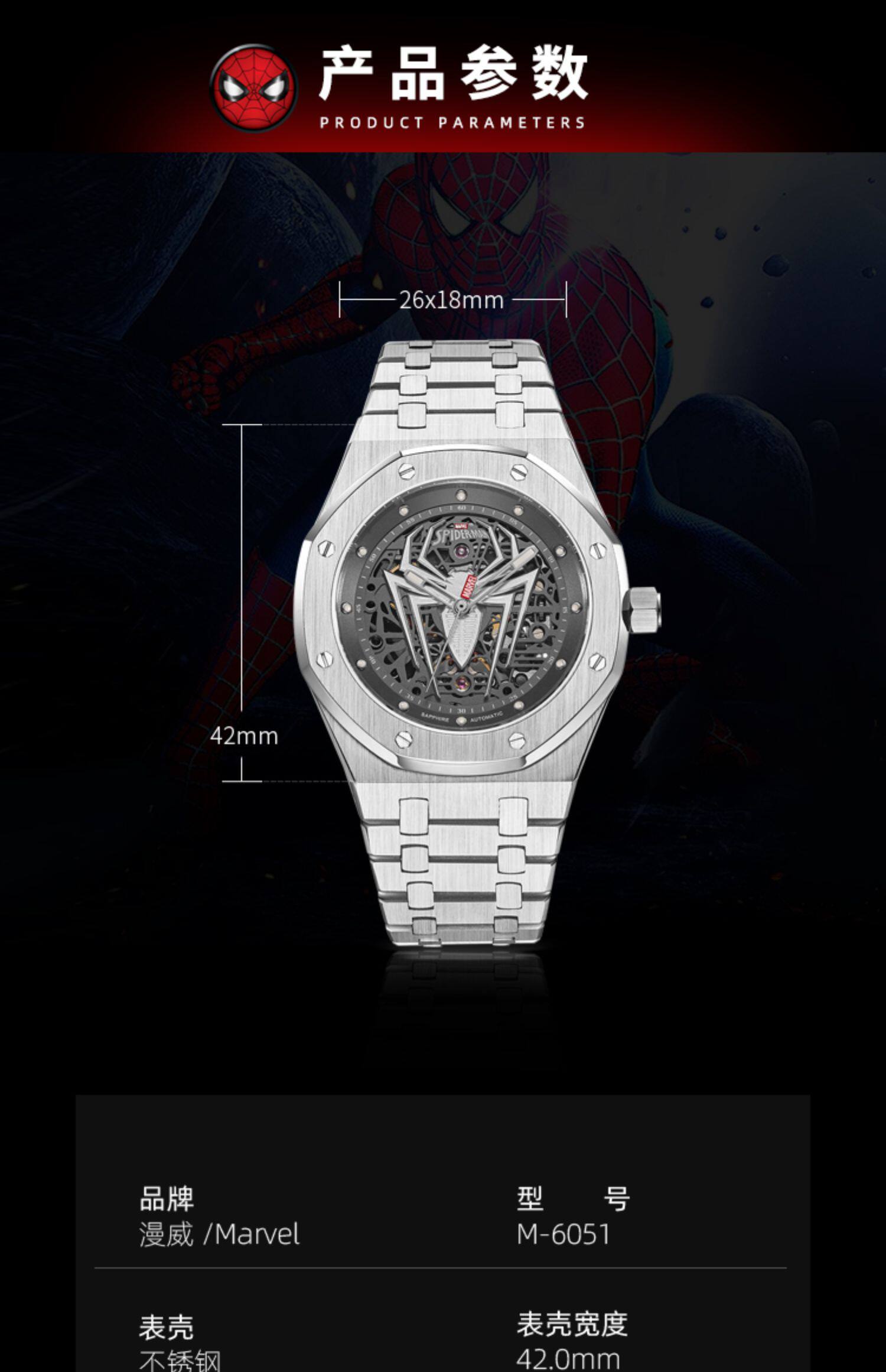 | Цвет: | Человек-паук-серебра [316 Squad Steel], Черный импортный механический механизм, полностью автоматический |