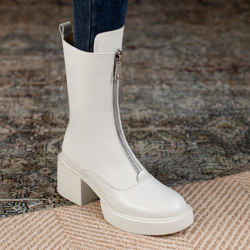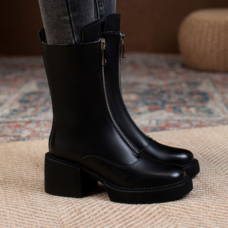 Martens, челси с молнией, короткие сапоги, средней длины, коллекция 2023, из натуральной кожи