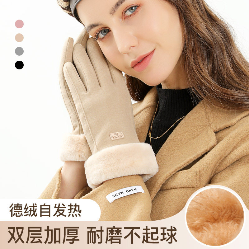 Зимние удерживающие тепло перчатки, бархатный утепленный ветрозащитный трендовый зимний комплект для школьников и студентов