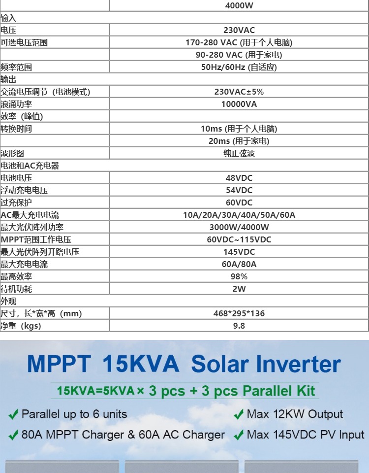- 15KVA/12KW80A(5KVA48V80AX3)