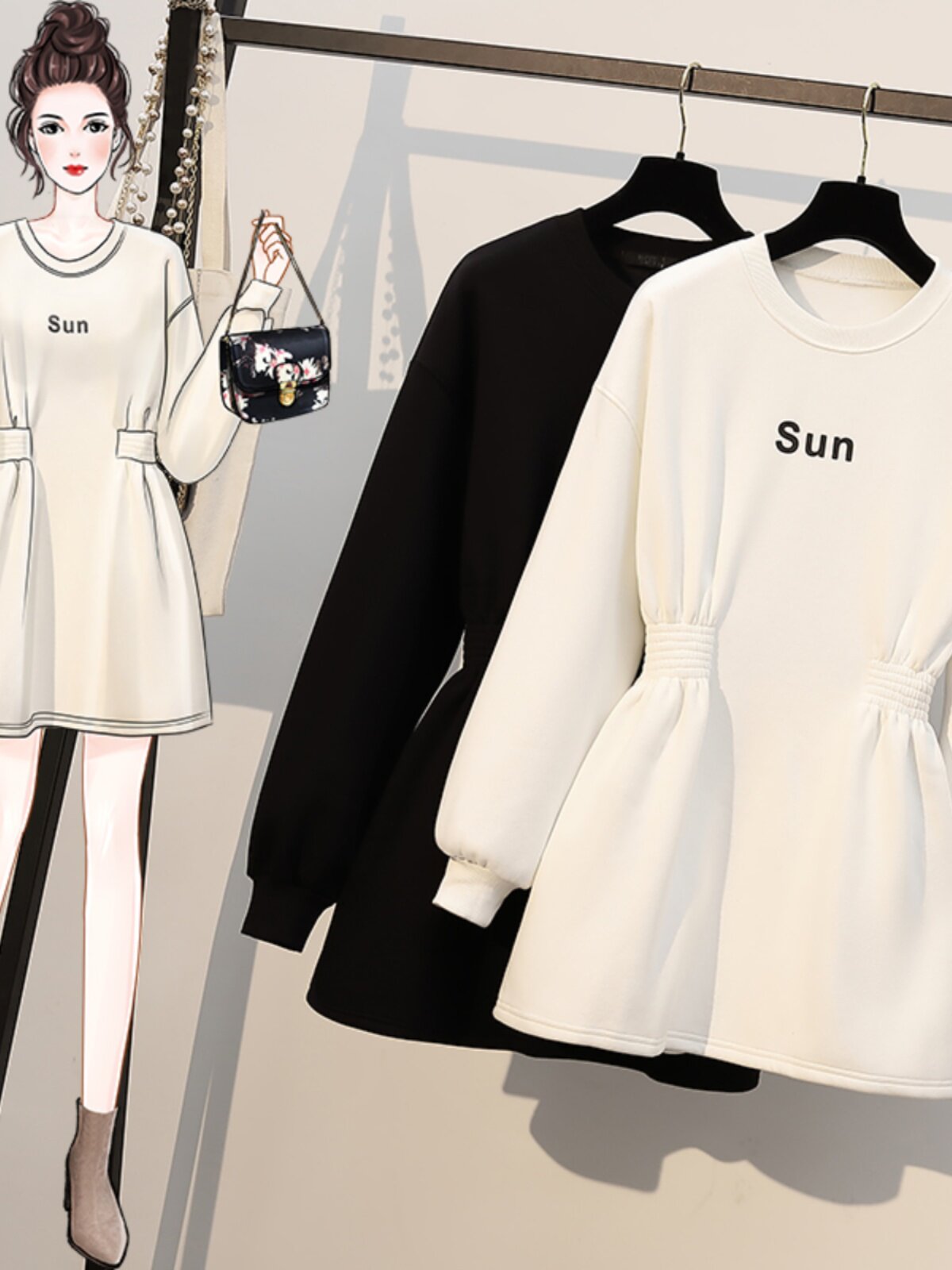 Осенний приталенный длинный корсет, утепленная толстовка, платье, большой размер, средней длины