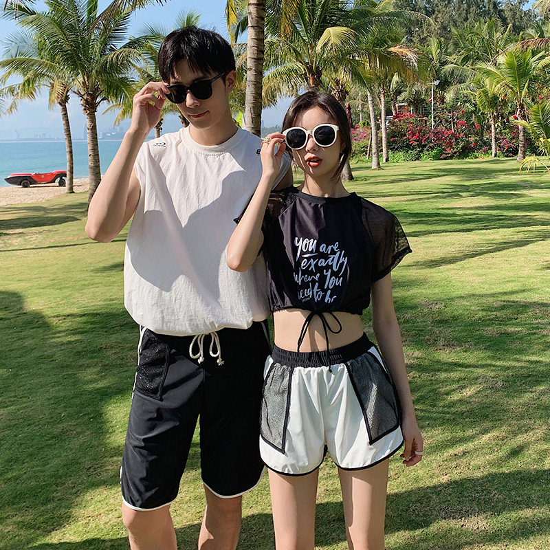 Купальник, раздельный спортивный пляжный модный комплект для влюбленных, коллекция 2021, 4 предмета, по фигуре