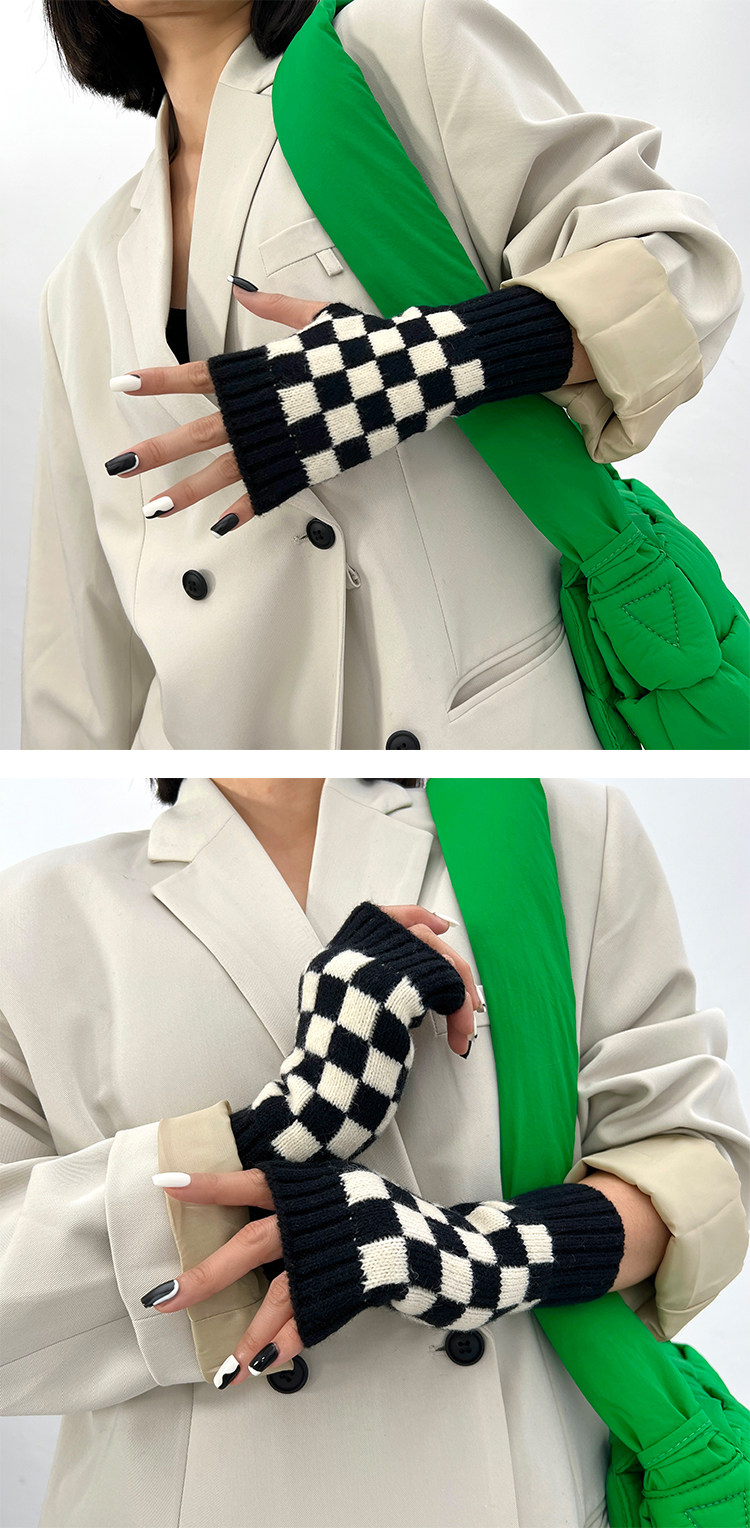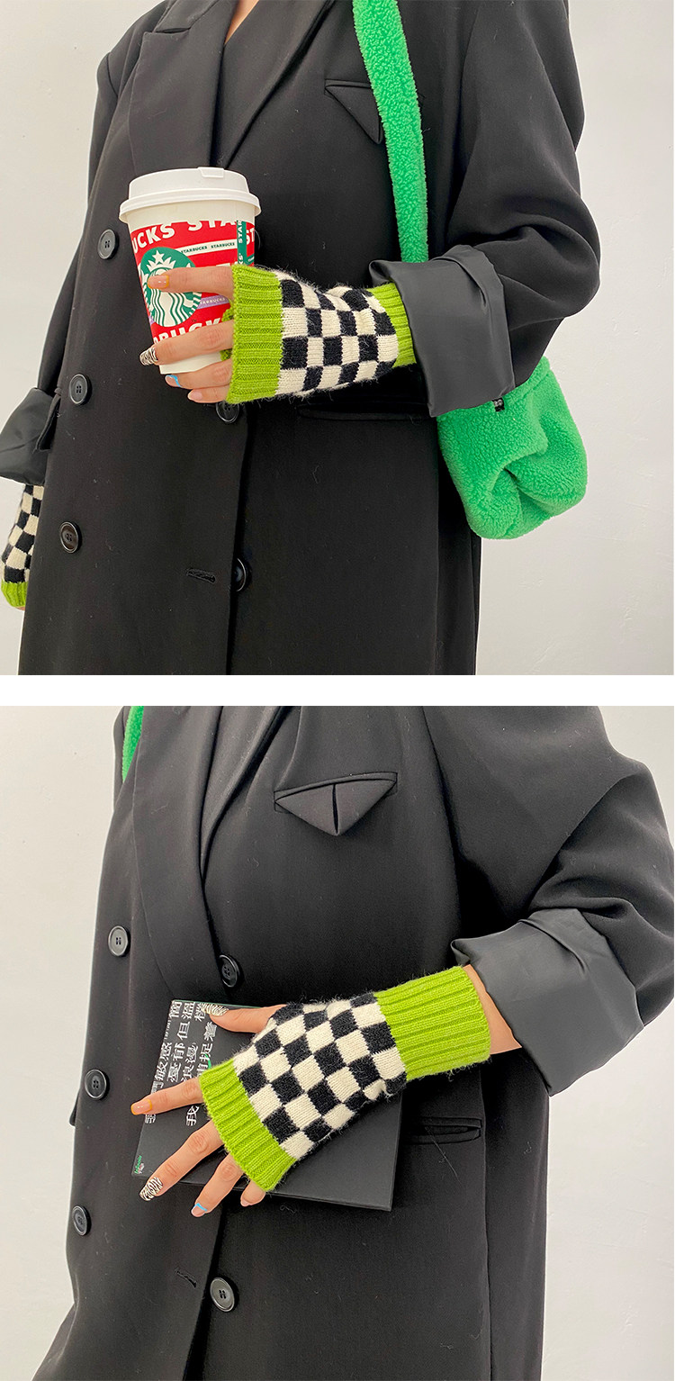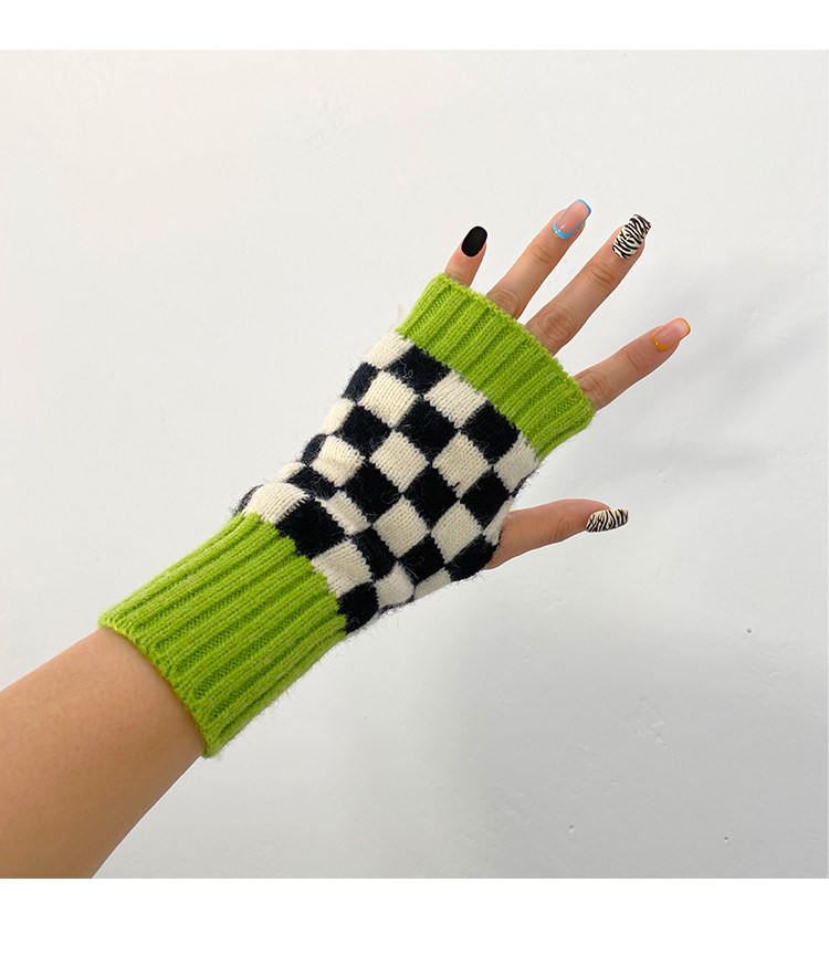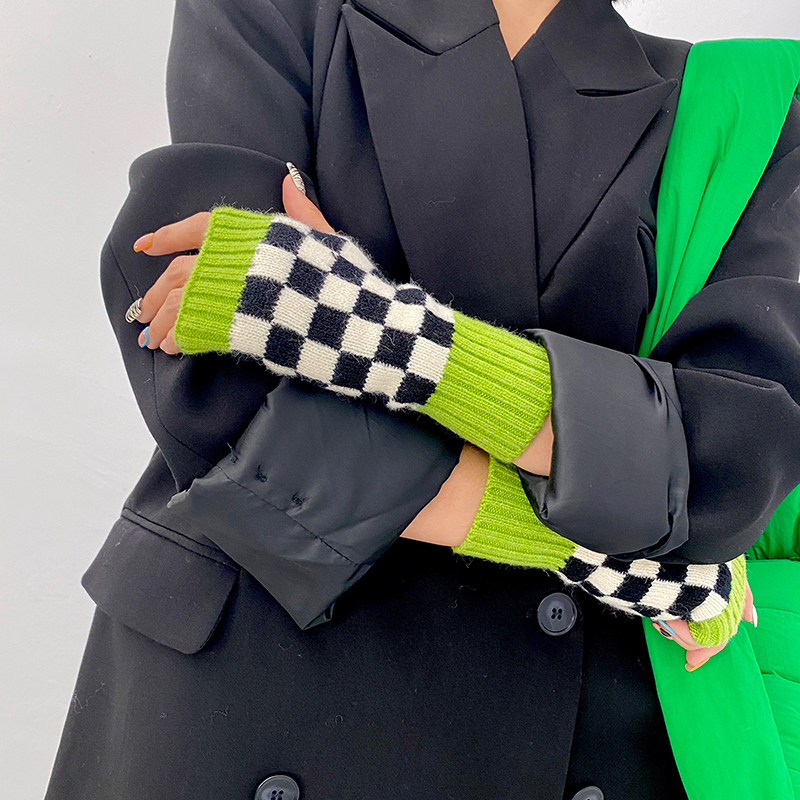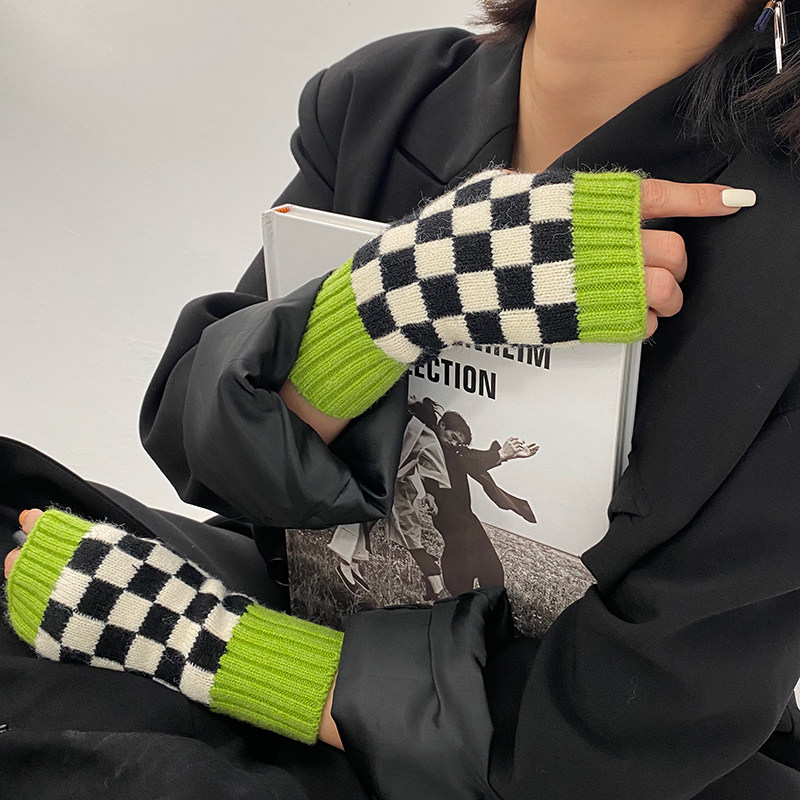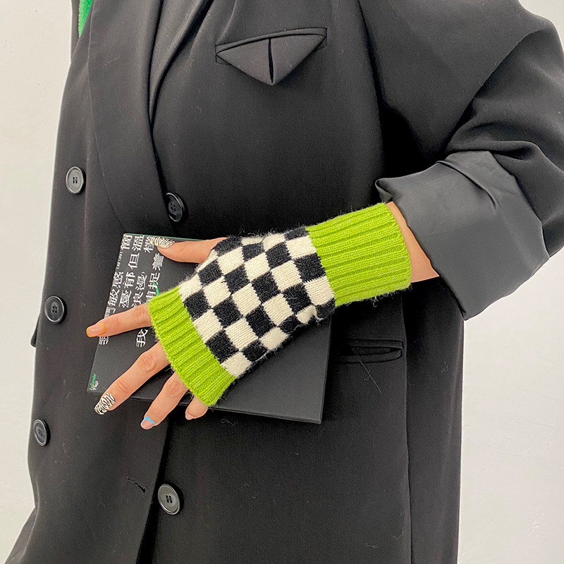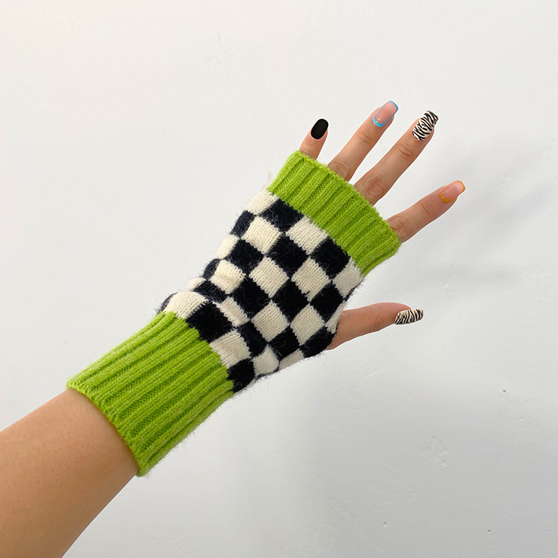 Зеленые шахматы, трикотажные демисезонные перчатки подходит для мужчин и женщин для маникюра, популярно в интернете, без пальцев