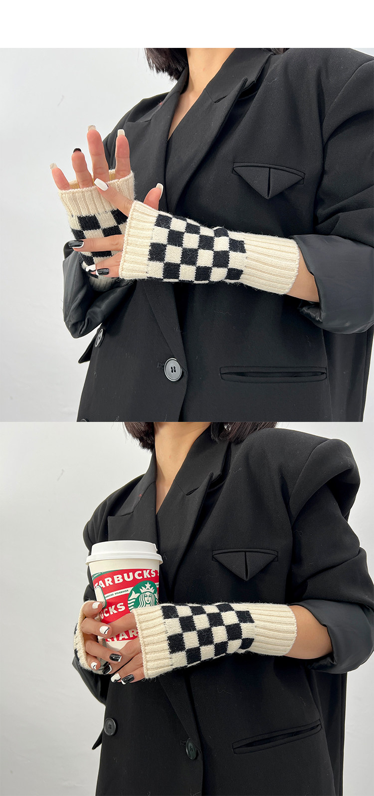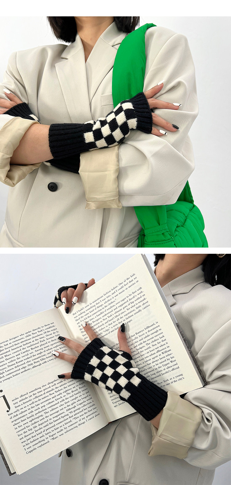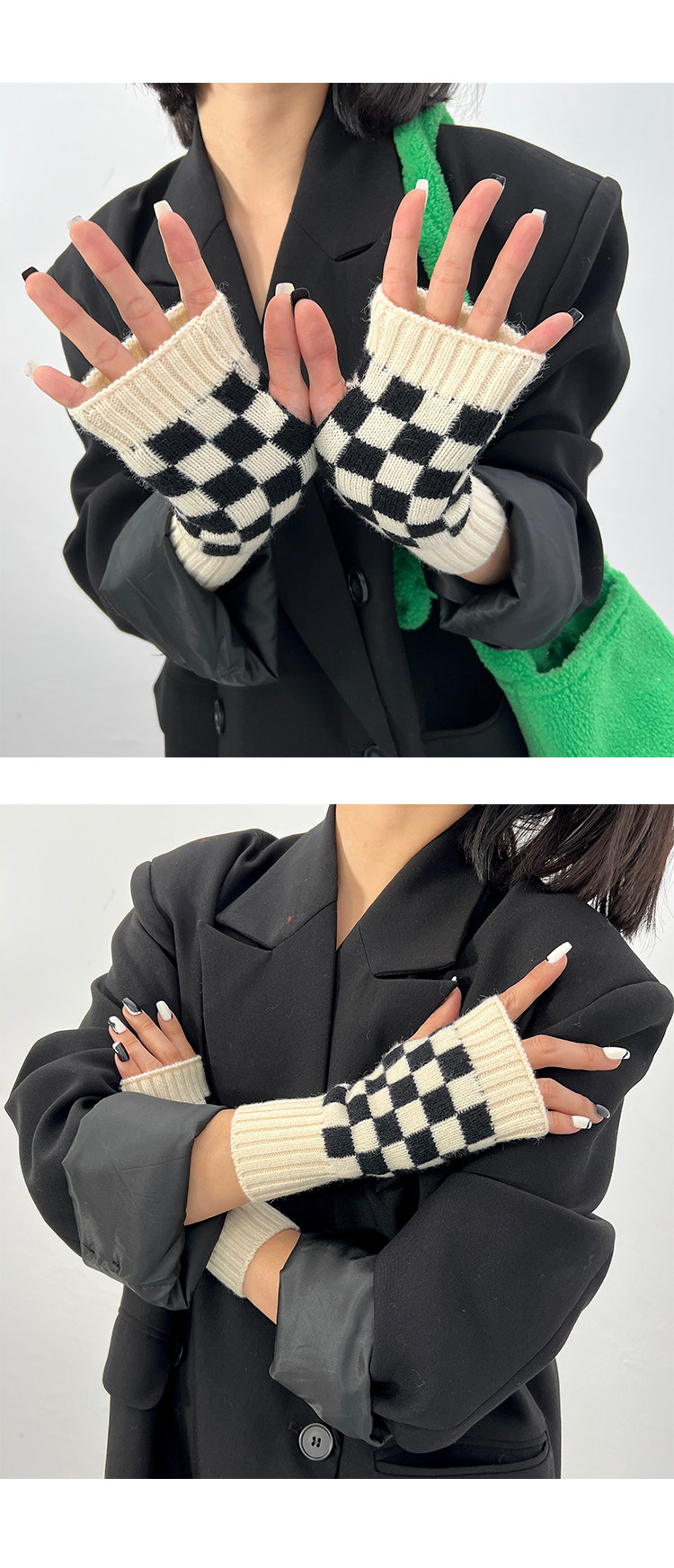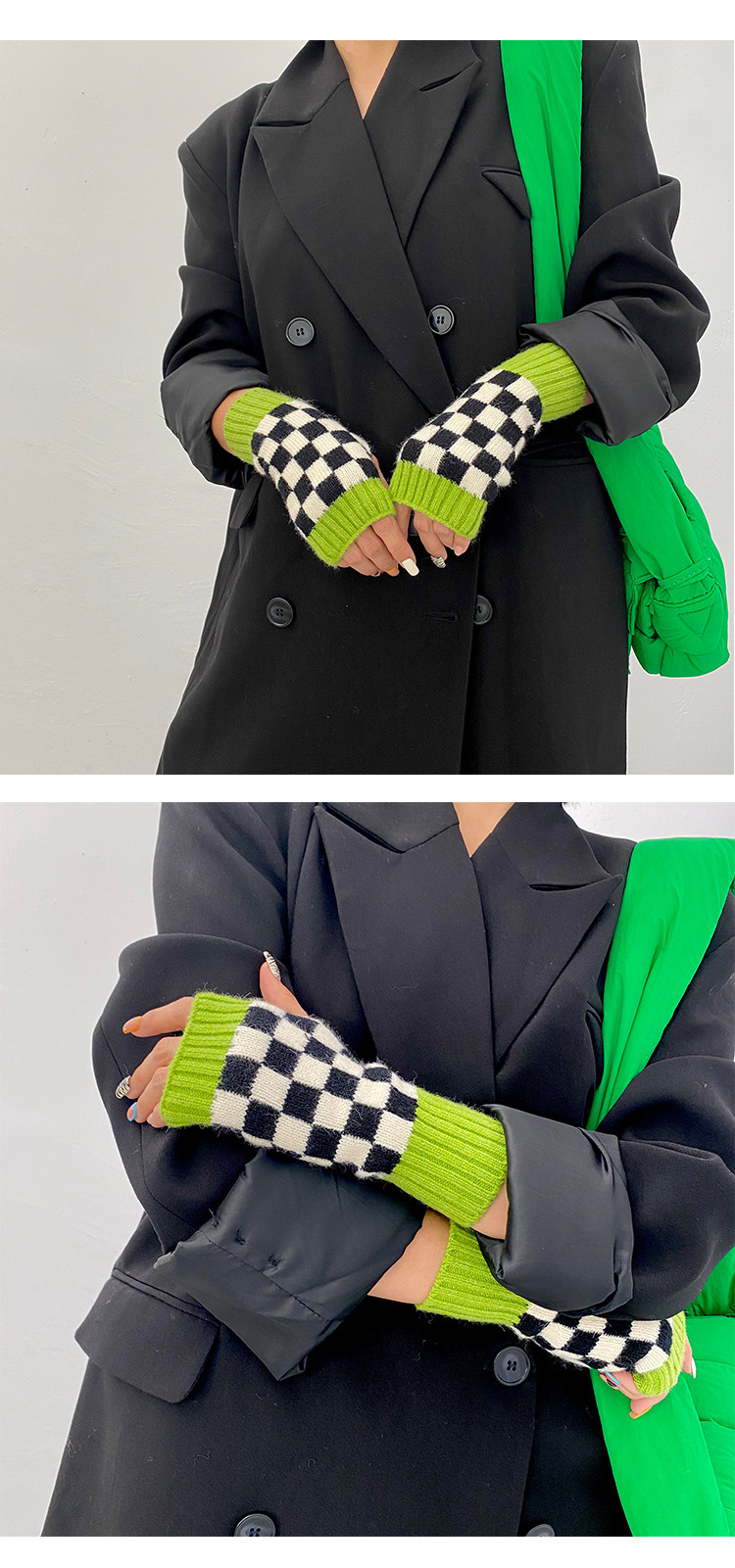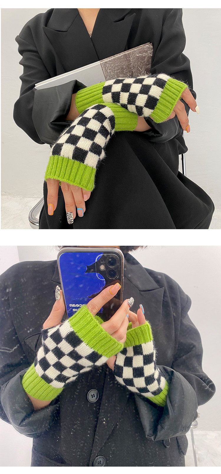 Зеленые шахматы, трикотажные демисезонные перчатки подходит для мужчин и женщин для маникюра, популярно в интернете, без пальцев