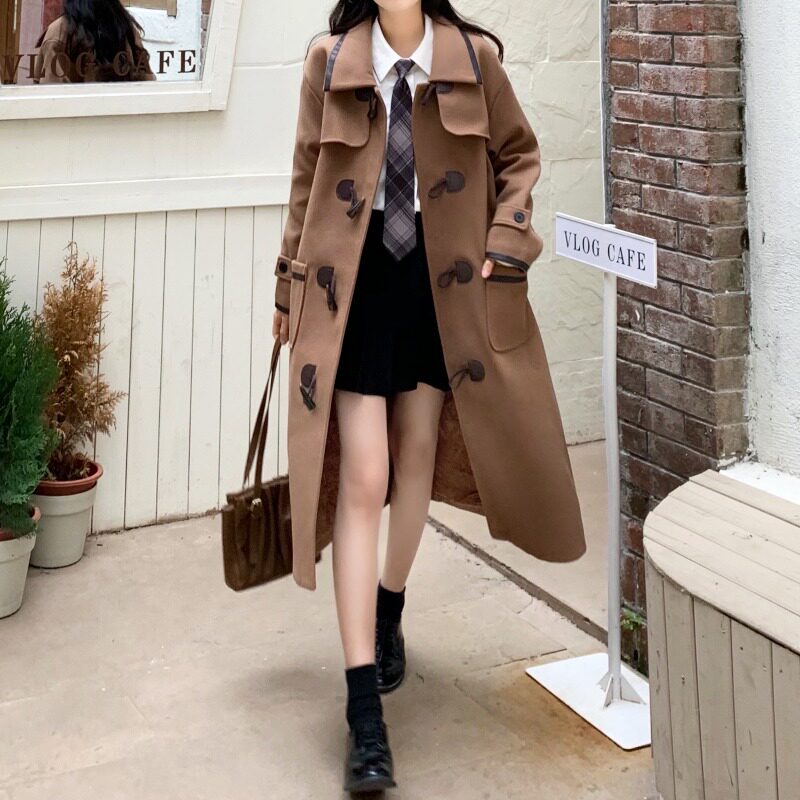 Шерстяное пальто, демисезонная длинная куртка, большой размер, коллекция 2021, средней длины, в корейском стиле