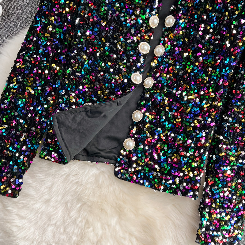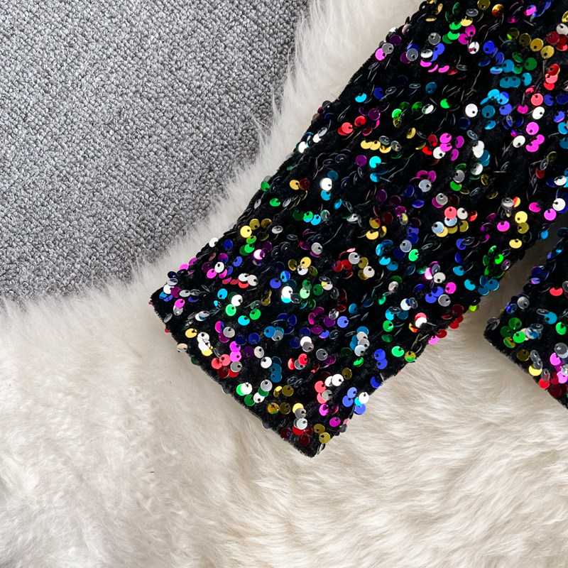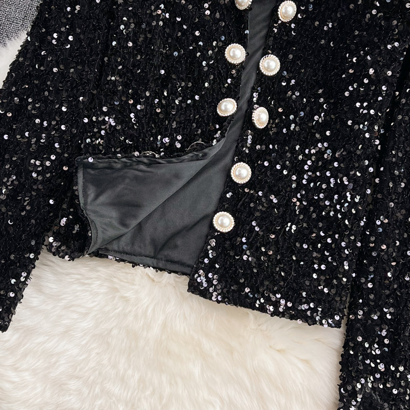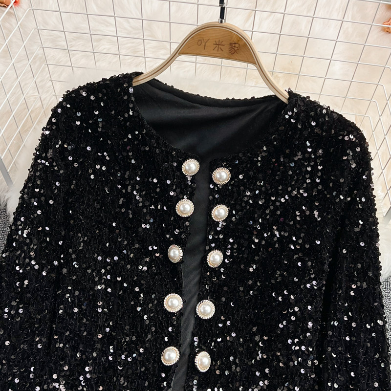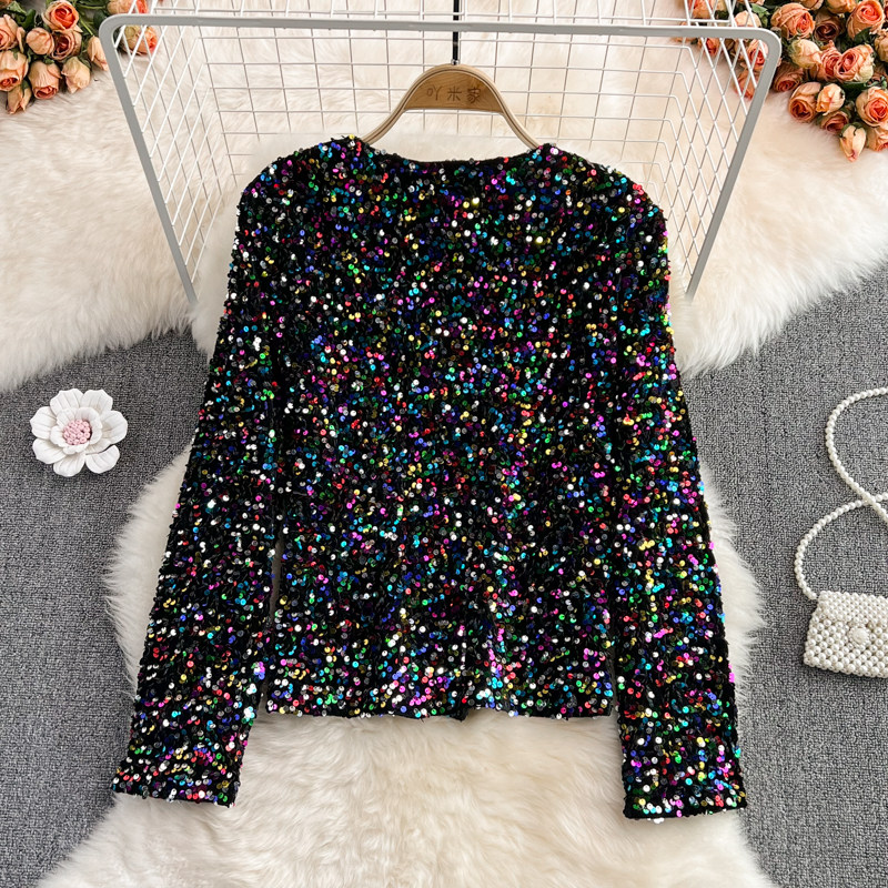 Демисезонный блестящий лонгслив, кардиган, костюм, куртка, в корейском стиле, с рукавом