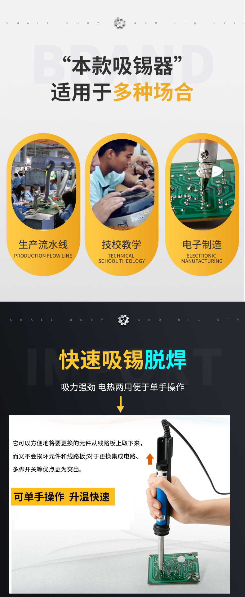 | Цвет: | Желтый цветок 842c пластиковый электрический мастер, Huanghua 845S Алюминиевый сплав Электрический оловянный всасывающий посуда |