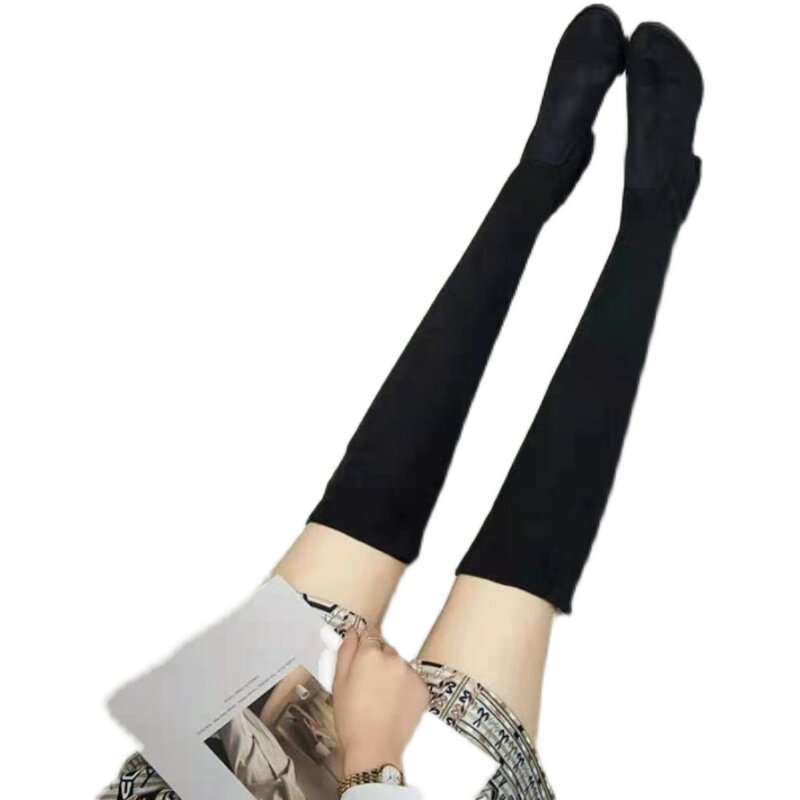 Демисезонные высокие сапоги, флисовые эластичные ботинки на высоком каблуке, коллекция 2021