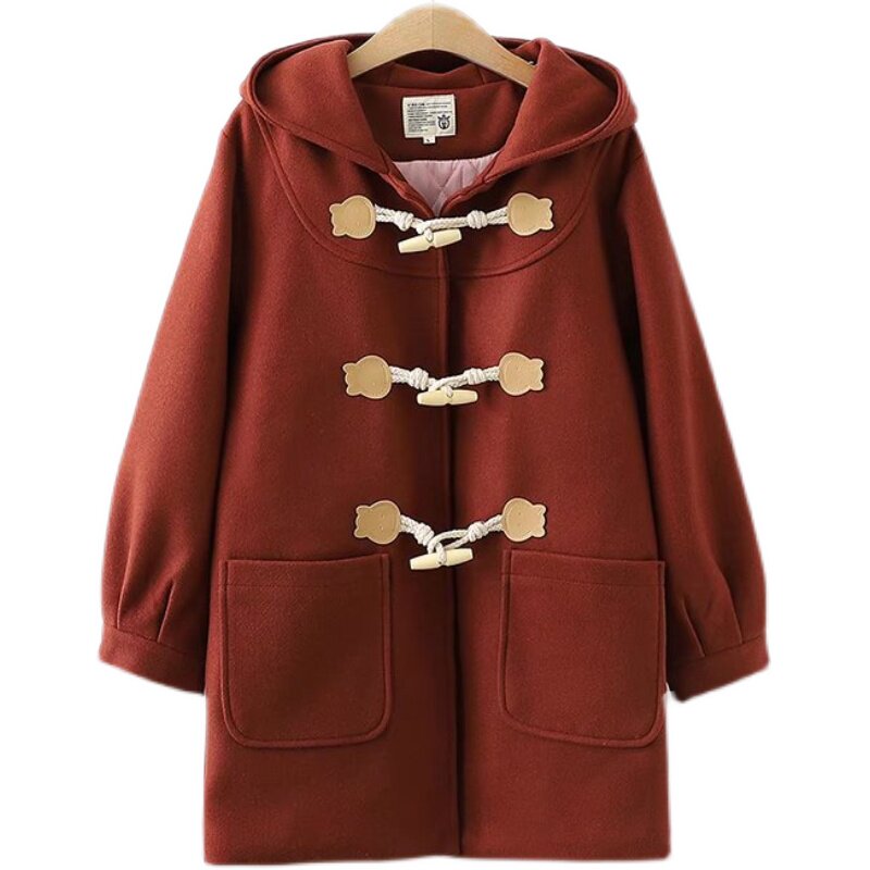 Японское длинное бордовое шерстяное пальто, подходит для подростков, коллекция 2023, средней длины