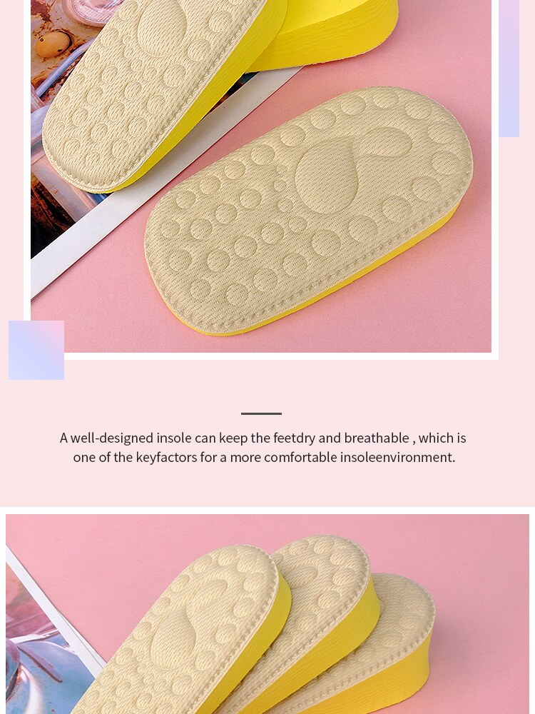 Детские невидимые стельки для увеличения роста, амортизирующие дышащие полустельки, впитывают пот и запах, мягкая подошва