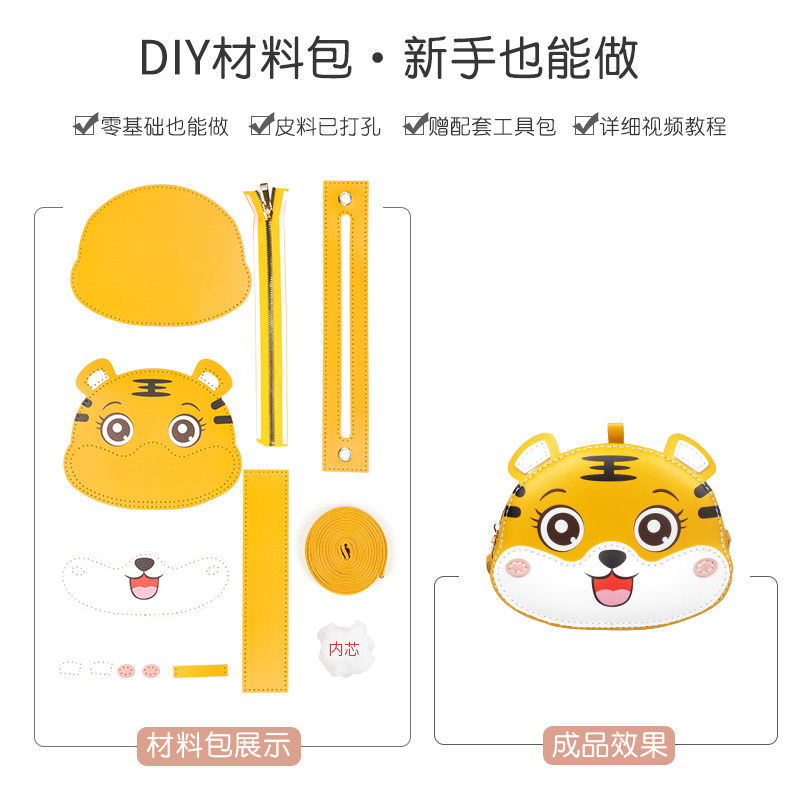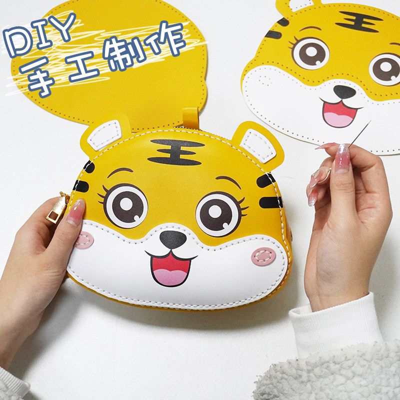 Мультяшная вязаная сумка ручной работы, картхолдер, набор материалов для друга, сумка на одно плечо, связать своими руками, тигр, подарок на день рождения