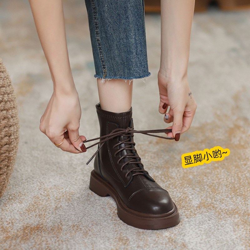 Martens, Tide, высокие короткие сапоги в английском стиле на платформе, из натуральной кожи, подходит для подростков, в британском стиле, модель весна/осень 2024 года