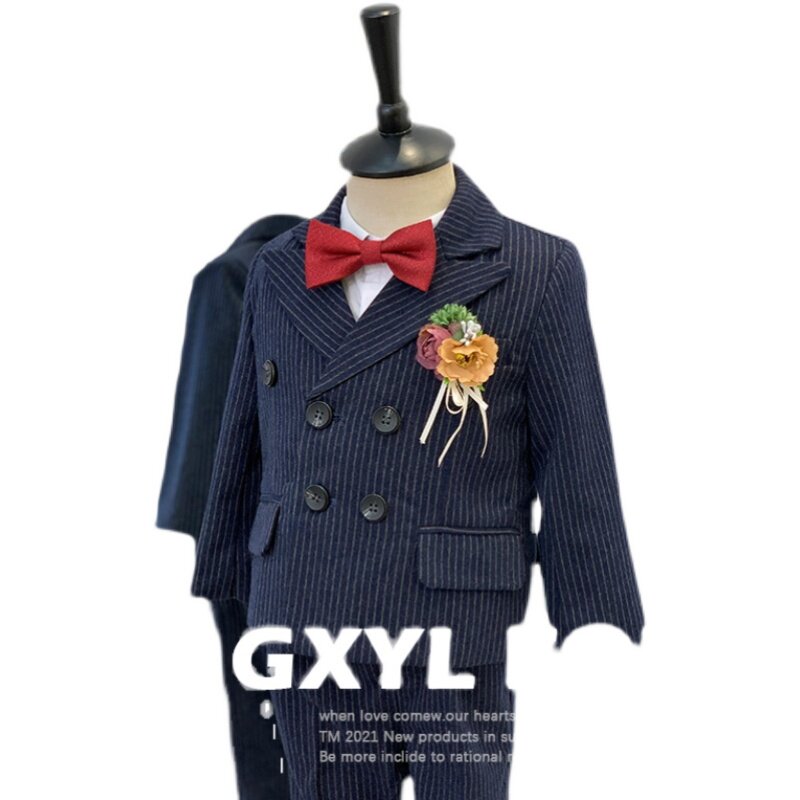 Детский комплект, осенний демисезонный пиджак классического кроя для мальчиков, платье девочки цветочницы, свадебное платье, наряд на выход, в британском стиле
