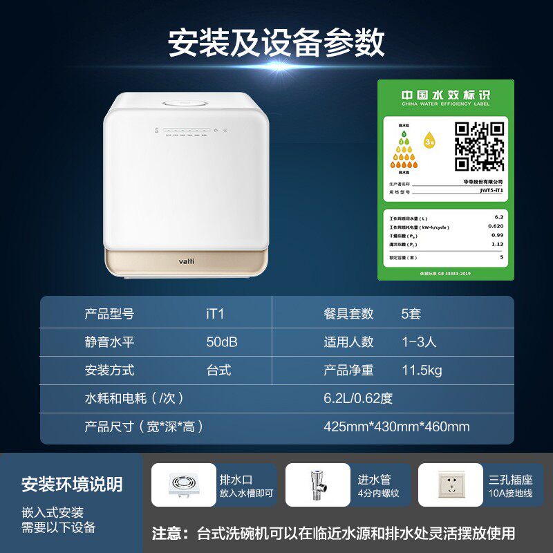 Vantage It1 Tabletop Посудомоечная машина пять -Аутоматическая пять -бездушная установка дезинфекционная щетка чаша Smart Drying Flagship
