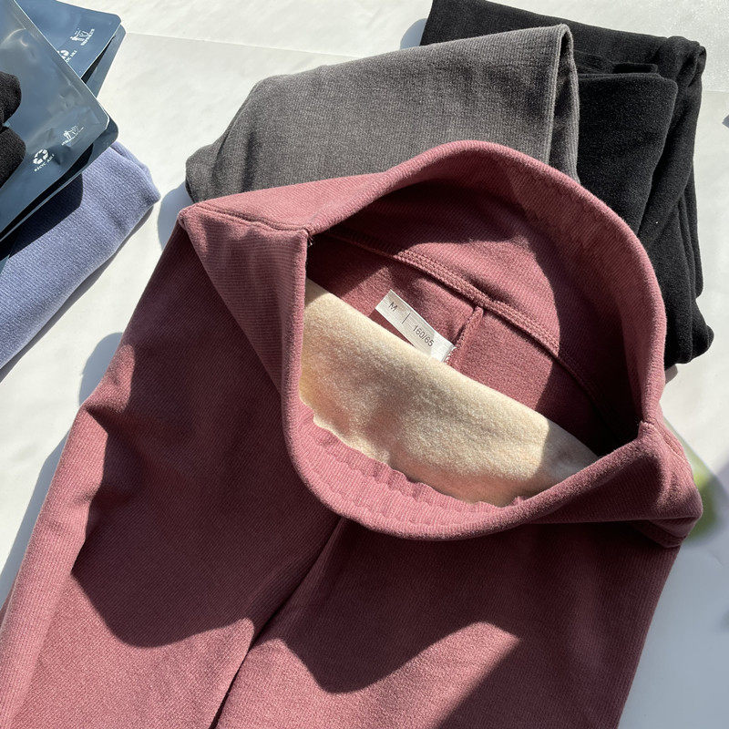 Бархатное термобелье, штаны, эластичный утягивающий пояс на талию, черные леггинсы