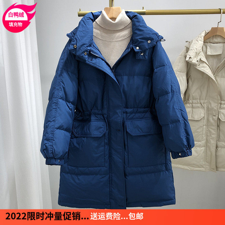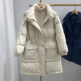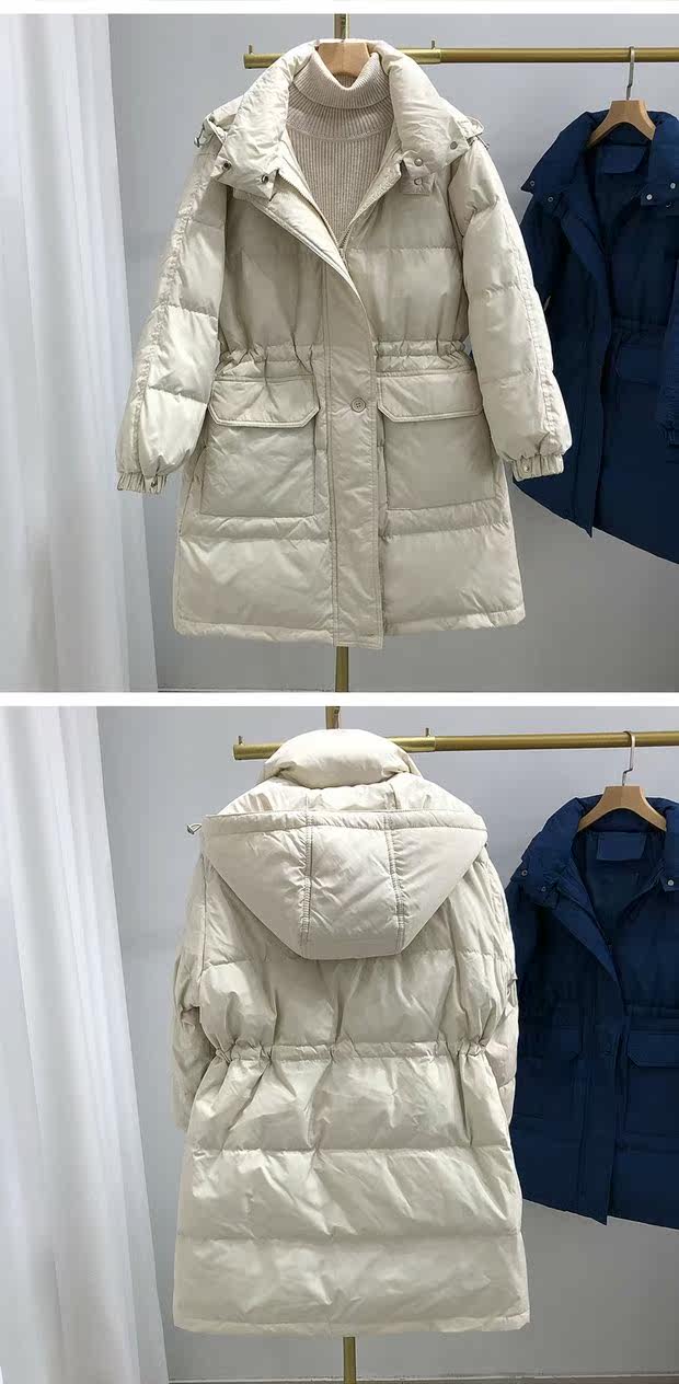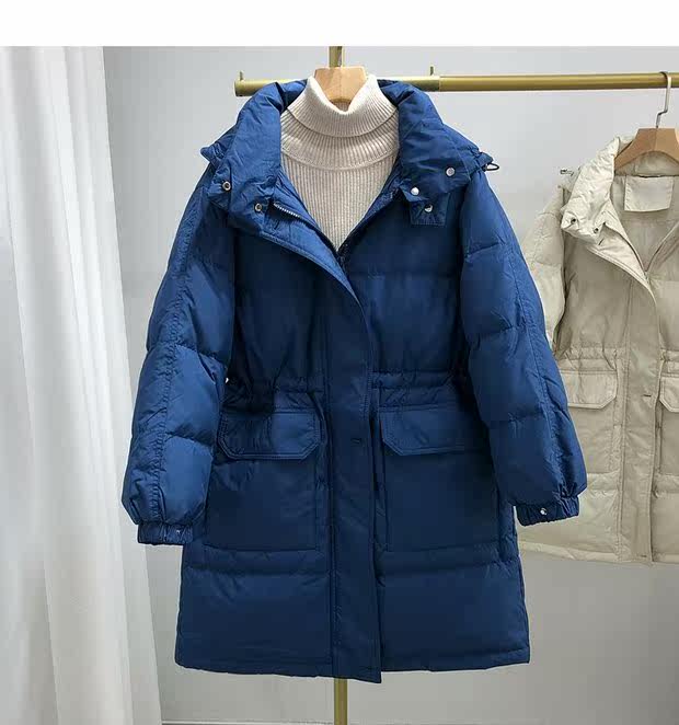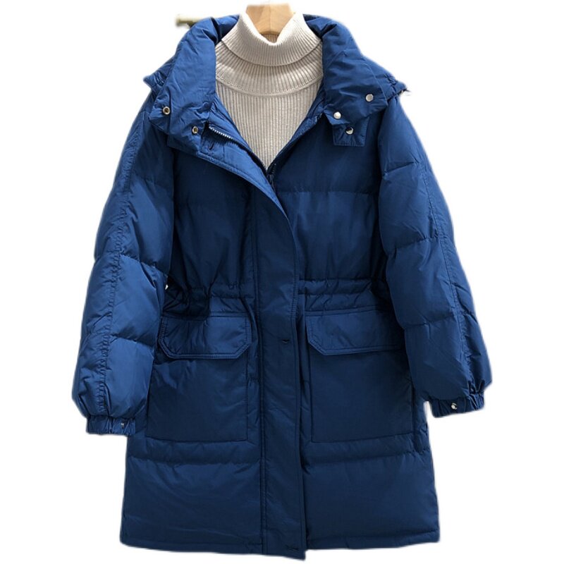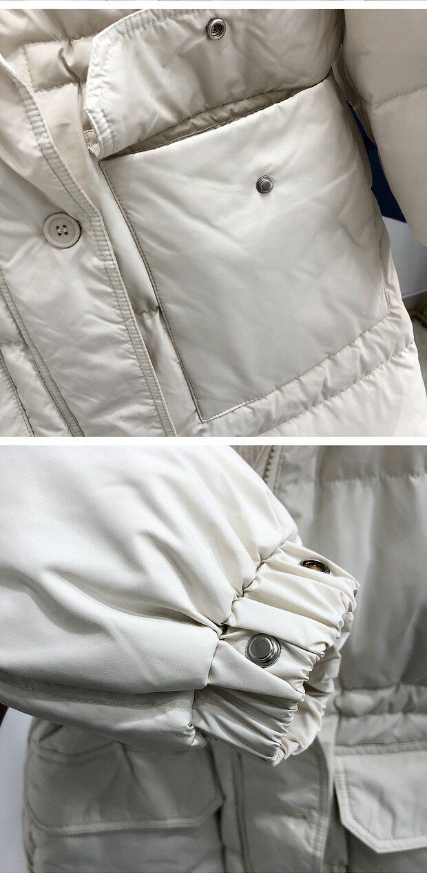 Товар, пуховик, бархатная куртка с карманами с капюшоном, в корейском стиле, средней длины, оверсайз, увеличенная толщина, утиный пух, коллекция 2021