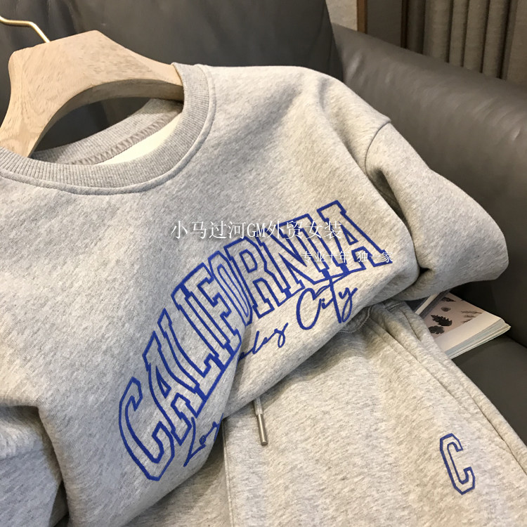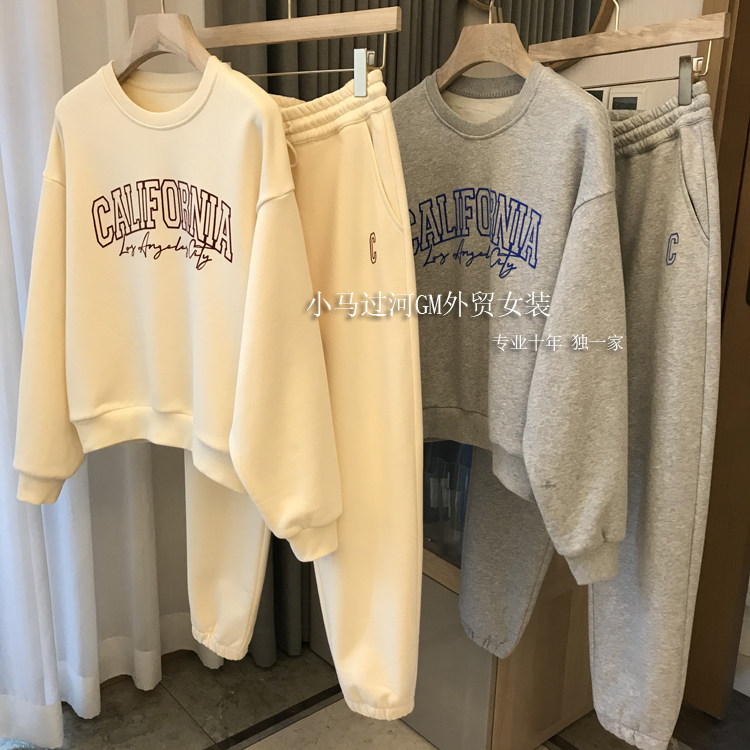 (Трансграничная торговля), штаны с круглым воротником, комплект, Франция, Италия, оверсайз, высокая талия, 2 шт