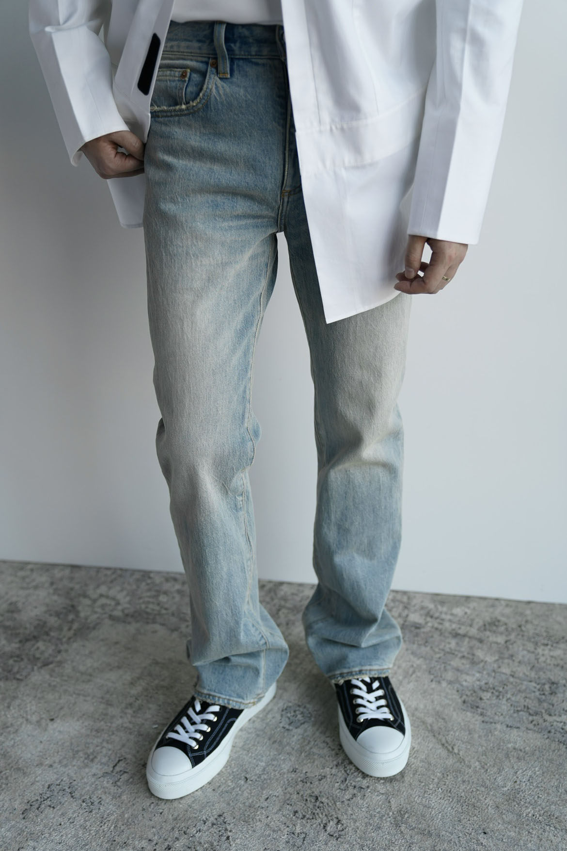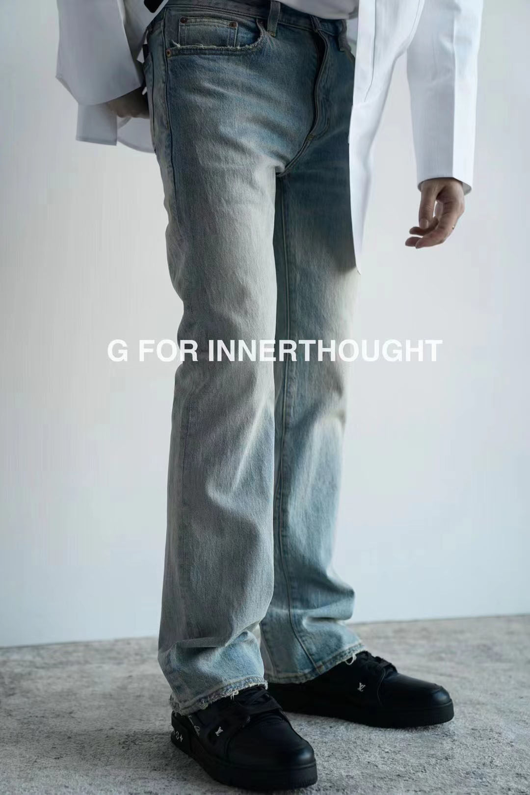 G для Innerough | Конус -это старая винтажная микроаллевая, прямая вода, мыть и шлифовать белые джинсы Мужчины