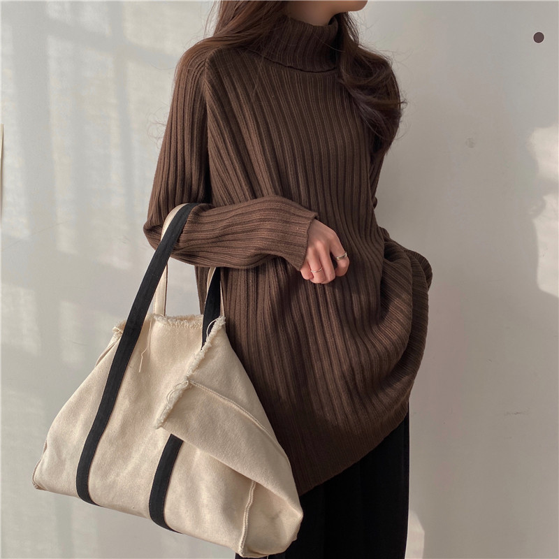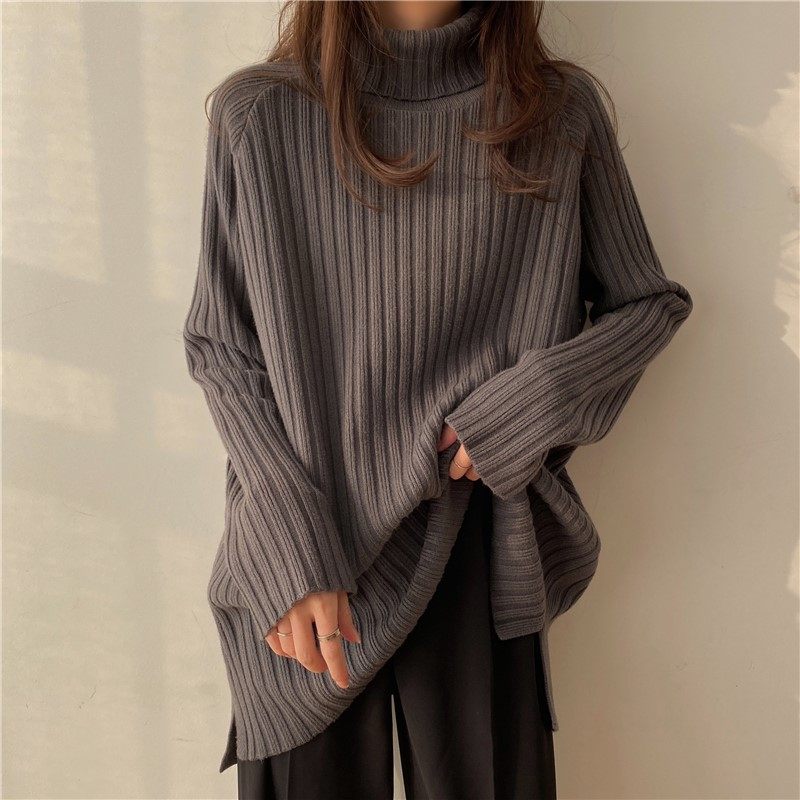 Весенний длинный трикотажный приятный телу свитер, большой размер, увеличенная толщина, свободный крой, средней длины