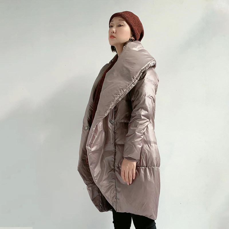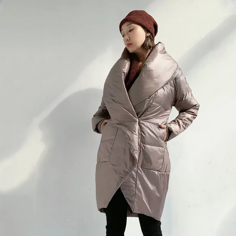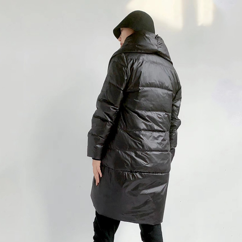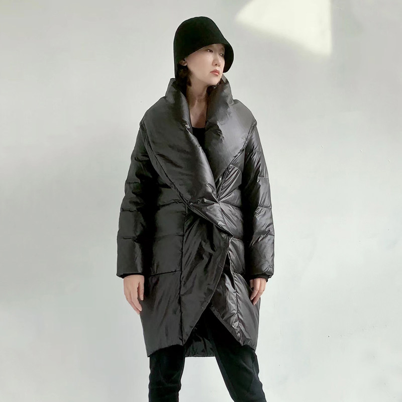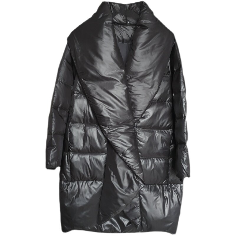 Оригинальный дизайнерский бархатный модный классический черный пуховик, утиный пух, V-образный вырез, длина миди, облегающий крой