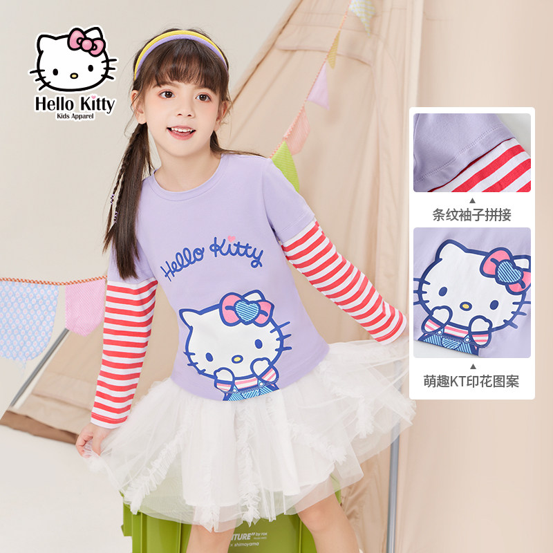 Hello Kitty, весенний базовый приятный телу лонгслив, футболка, детская одежда, тренд сезона, подходит для подростков