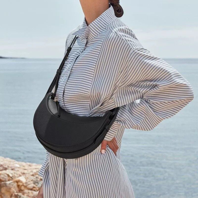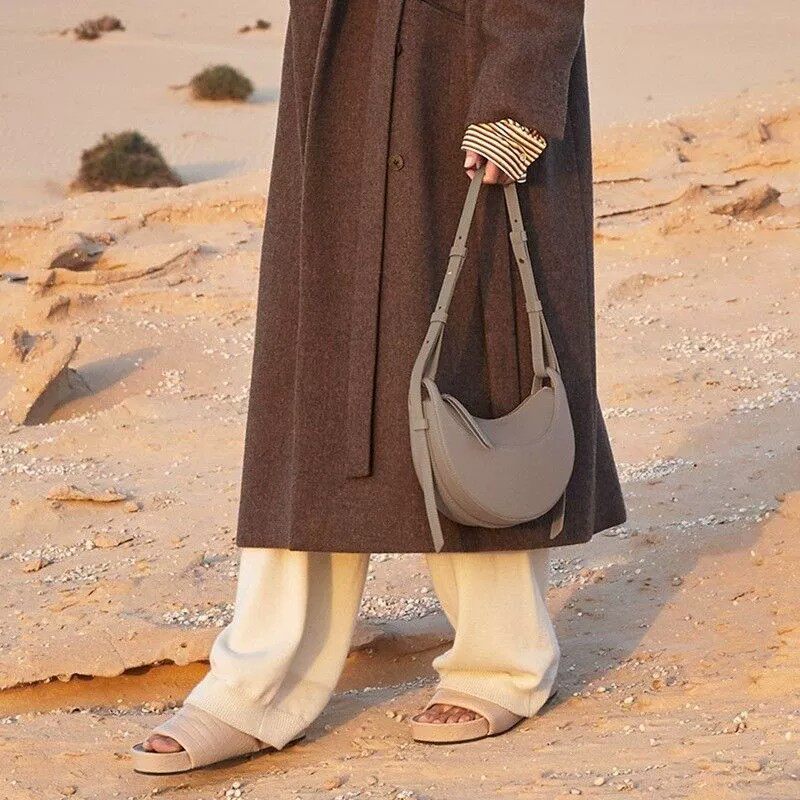 Европейская прямая почтовая рассылка POLENE Numero Dix, серая женская сумка в форме полумесяца из шагреневой телячьей кожи, подмышки