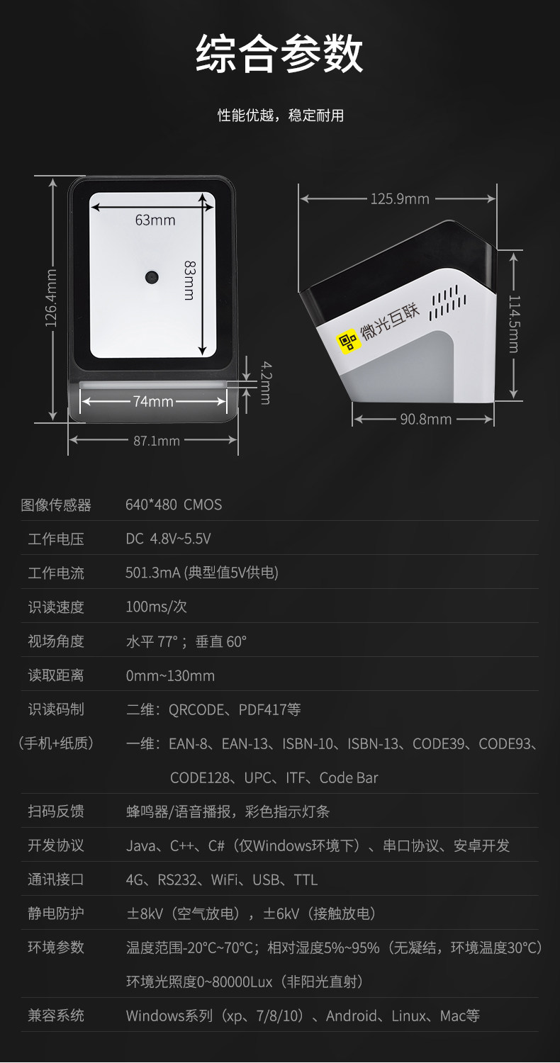 微光互联 MC100-4G QR-код сканер настольный голосовой код мобильного сканирования код входа в систему вход сцены QR-код сканер Scanner