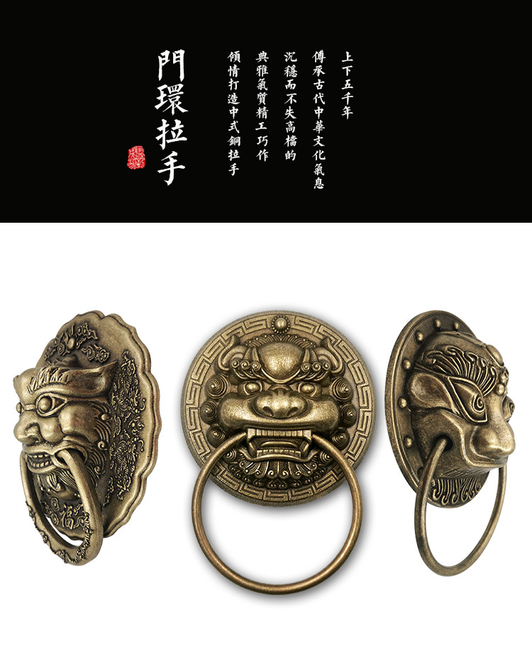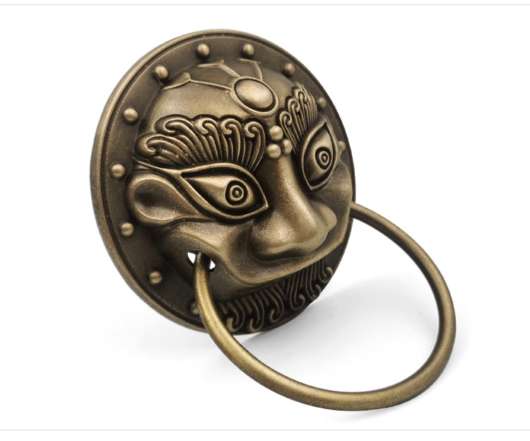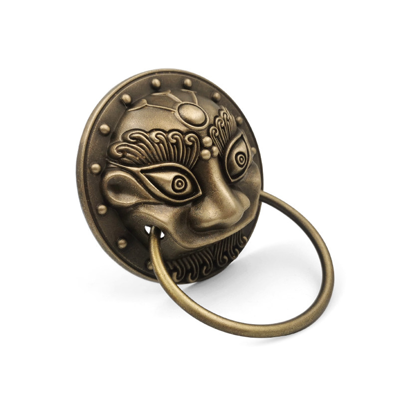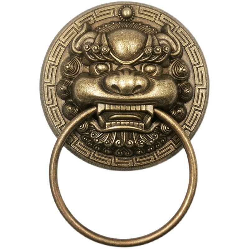 Бронзовая деревянная дверь, медные аксессуары, украшение, деревенская пряжка, дверная ручка, дверной молоток, голова льва, медная голова животного, медное кольцо