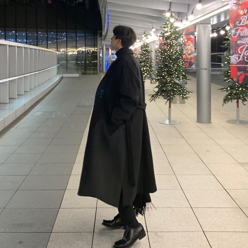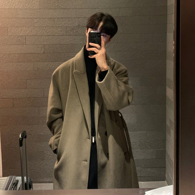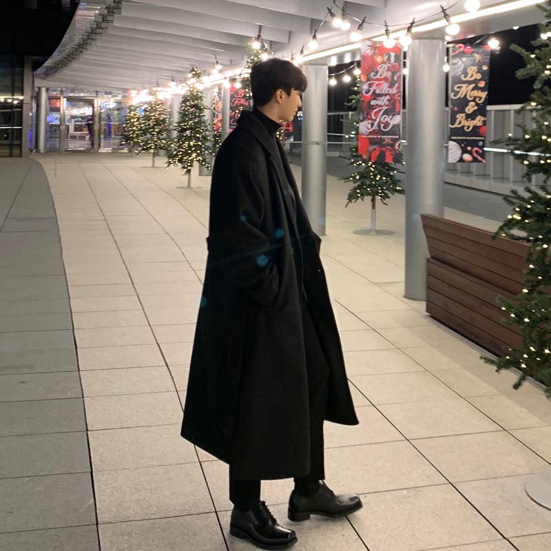 Зимнее длинное шерстяное пальто для мальчиков, плащ, в корейском стиле, в британском стиле, средней длины, изысканный стиль, увеличенная толщина