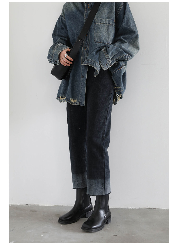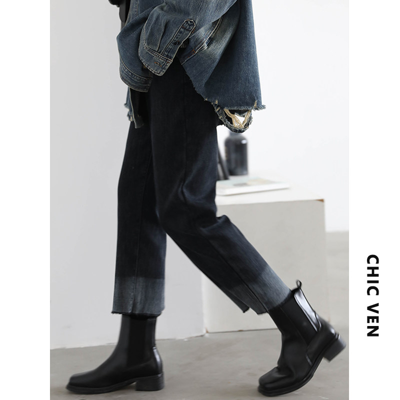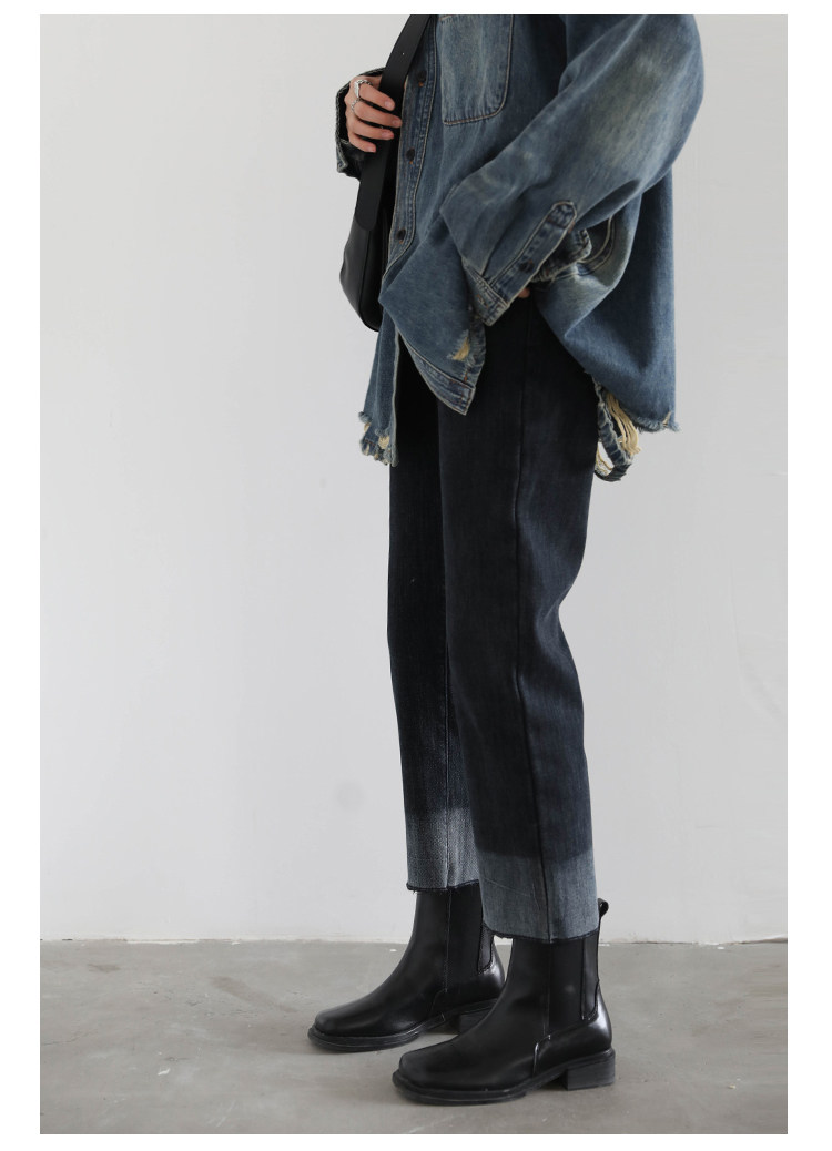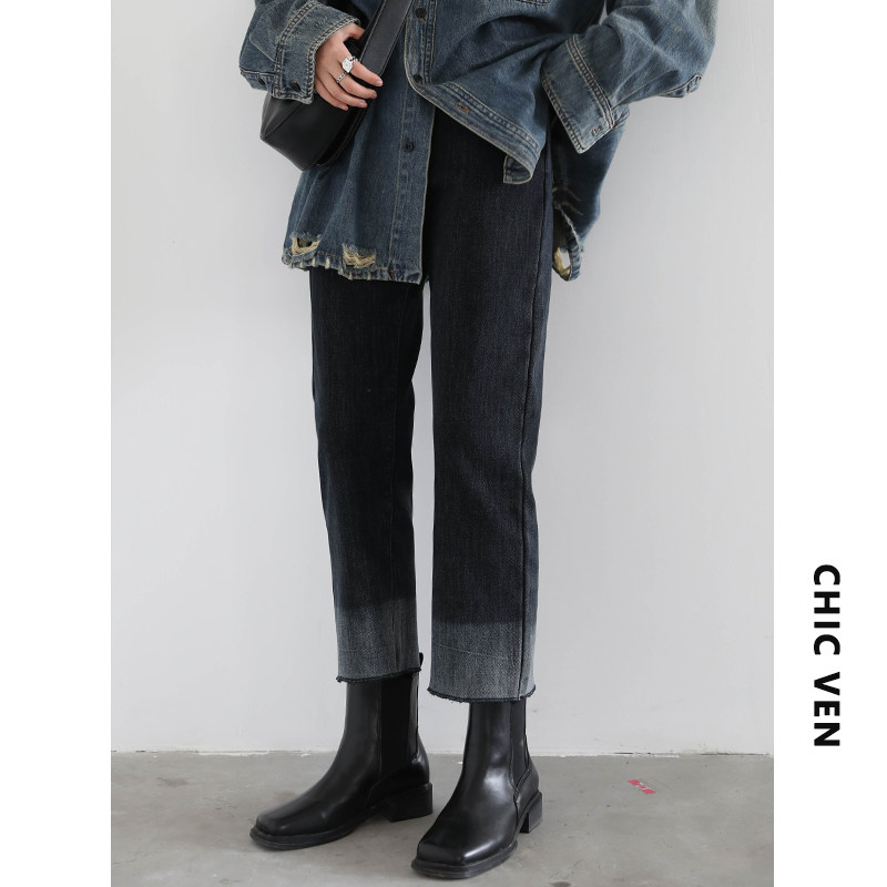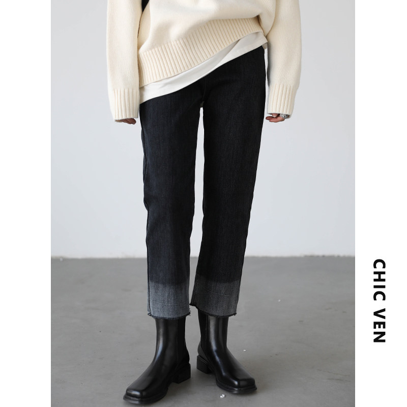 Эмоциональные ретро флисовые джинсы, зимние штаны, градиент, свободный прямой крой
