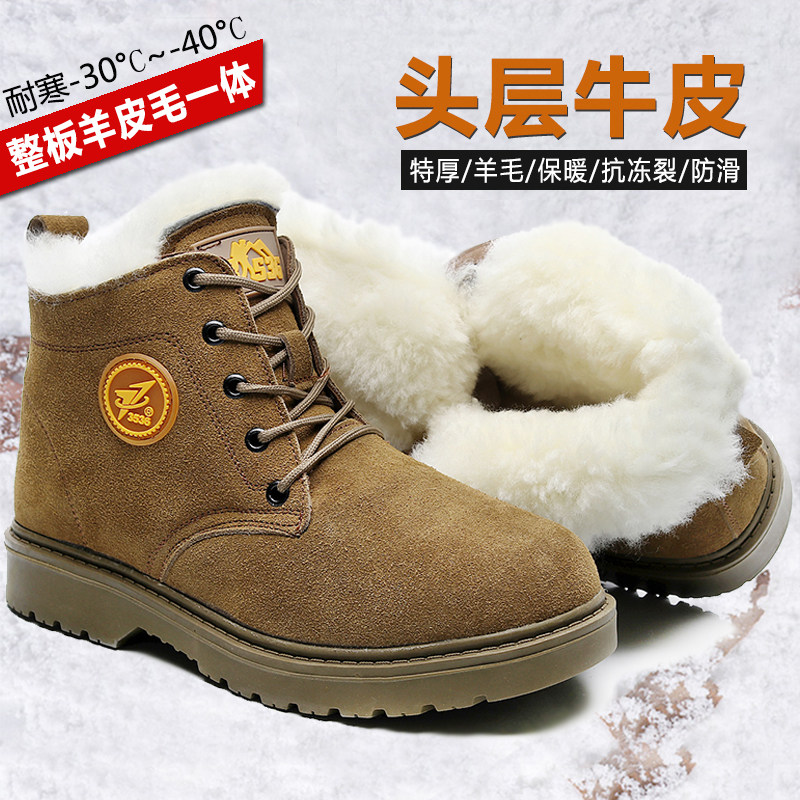 Северо -восточные холодные хлопчатобумажные солдаты с хлопчатобумажными сапогами сгущенными шерстяными ботинками мех -в одном снежном ботинках мужская защита труда