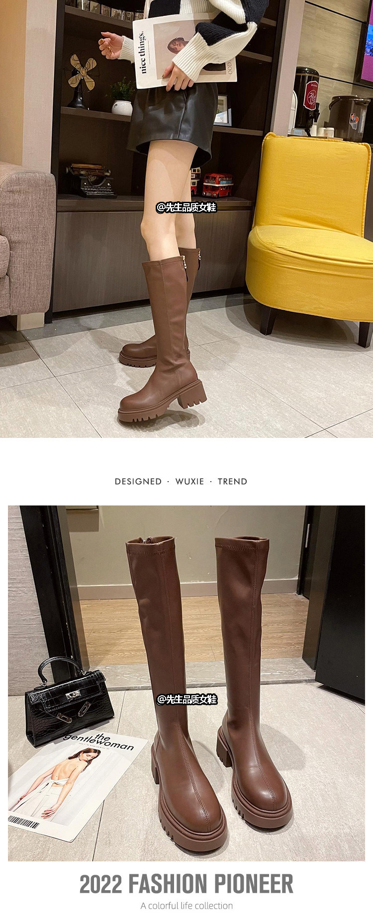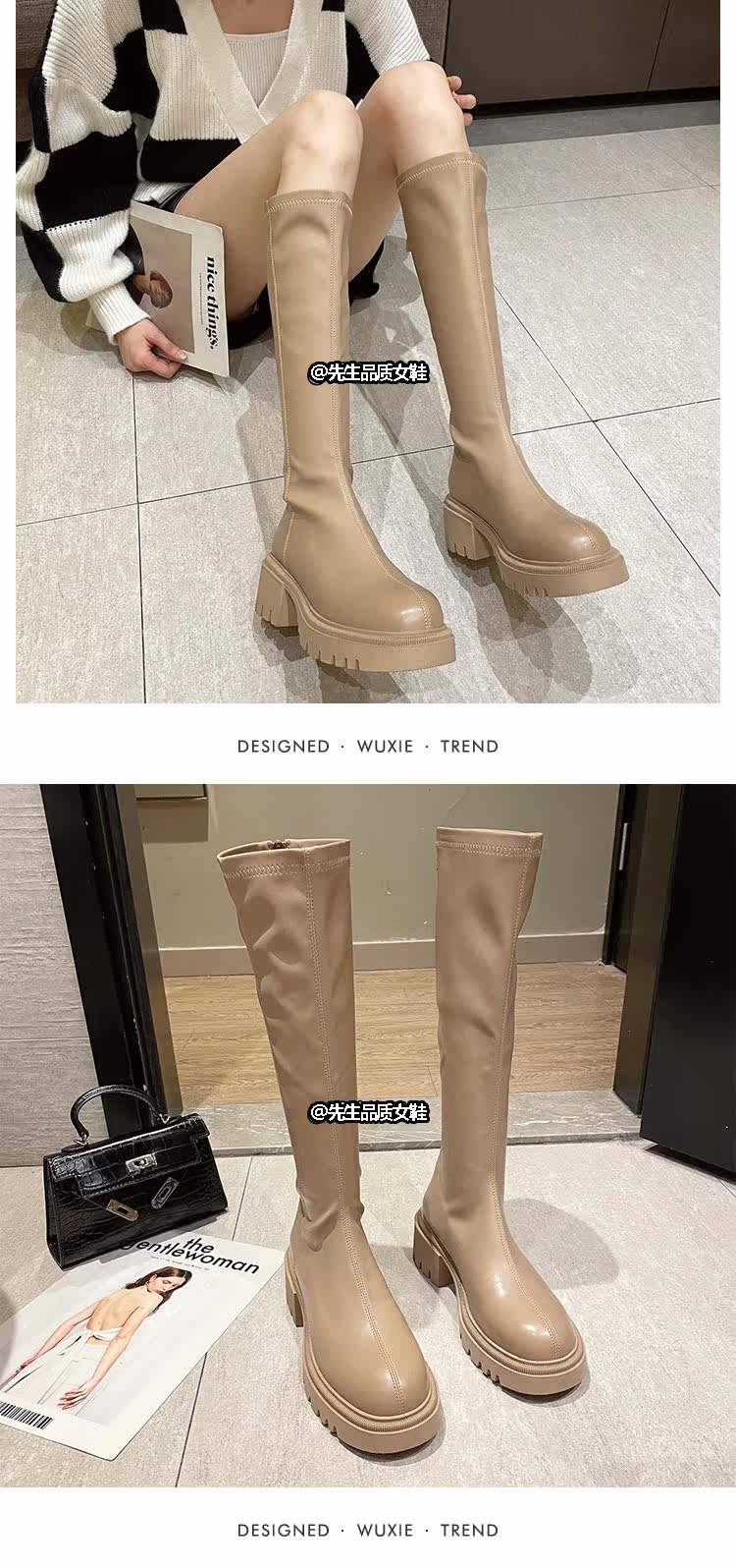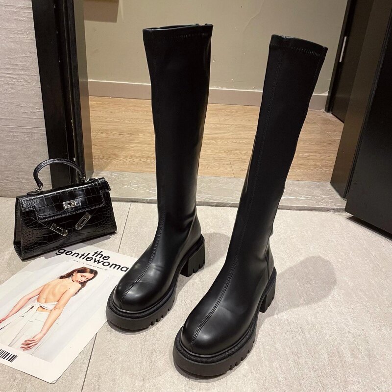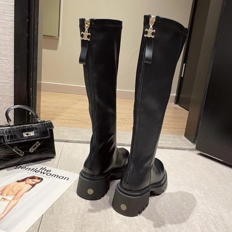 Зимние элегантные высокие сапоги с молнией, европейский стиль, декоративные отстрочка