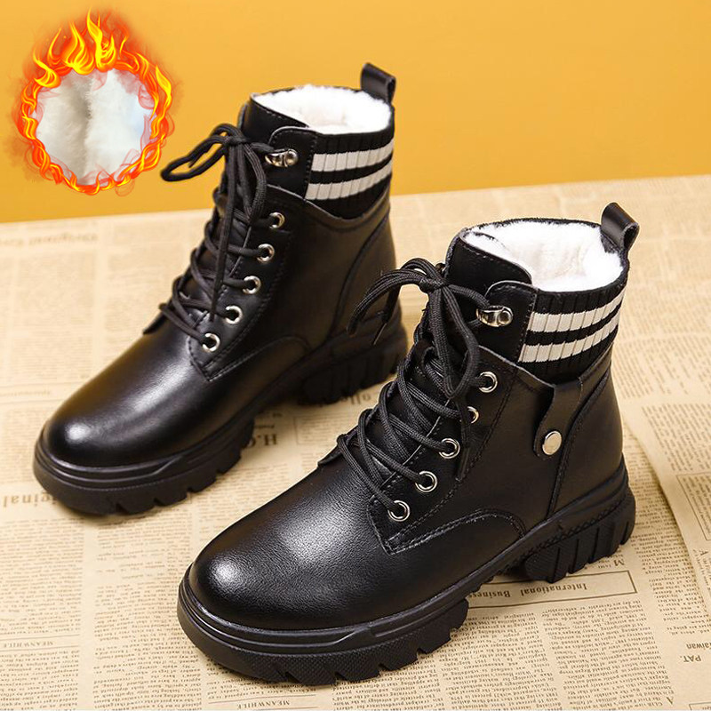 Martens, зимние ботинки, утепленные черные короткие сапоги, зимняя обувь, 2023, подходит для подростков