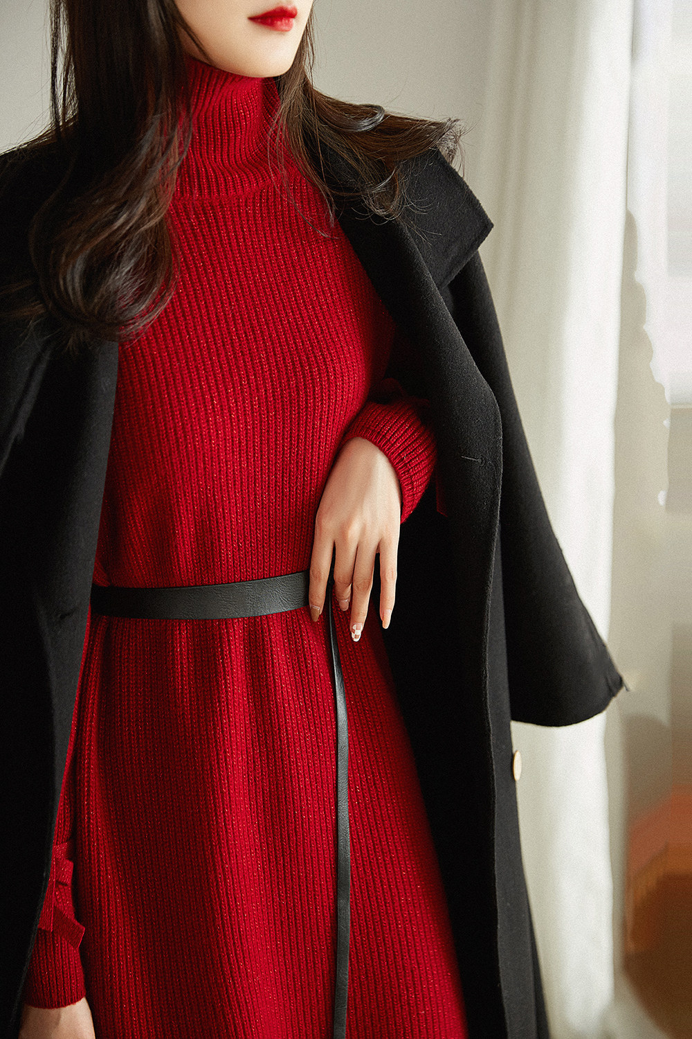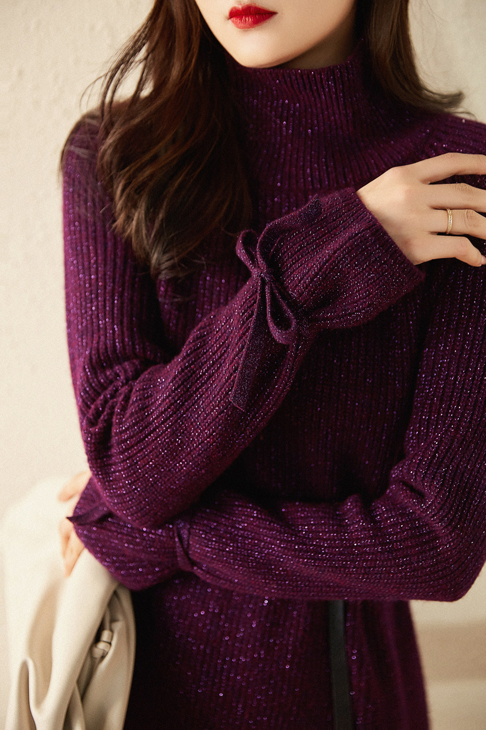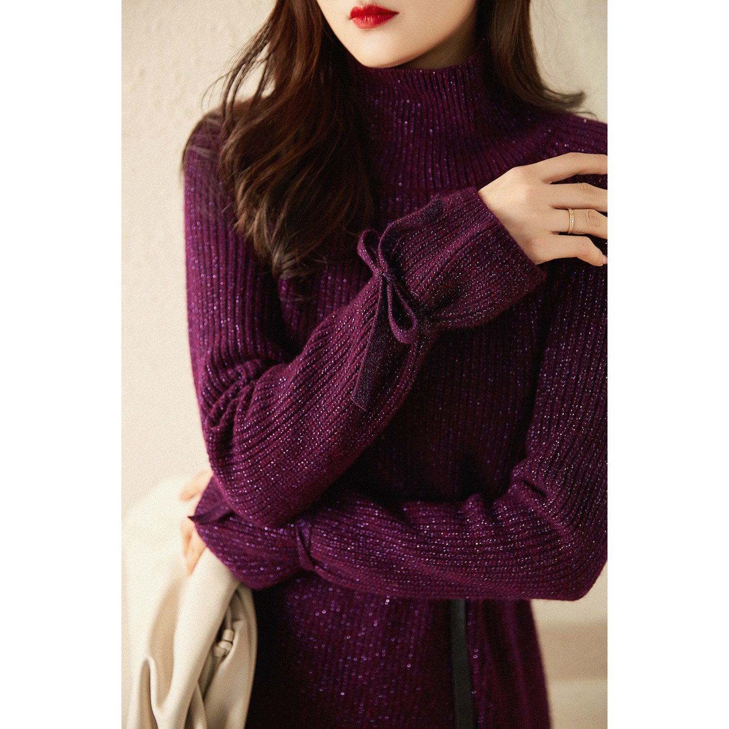 Элегантное шерстяное платье, юбка, модный лонгслив, высокий воротник