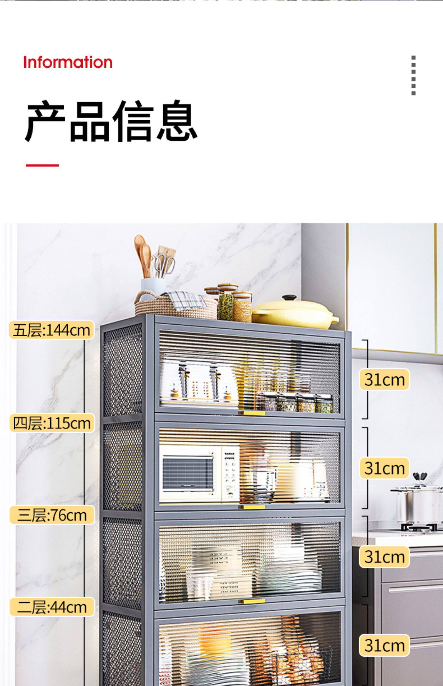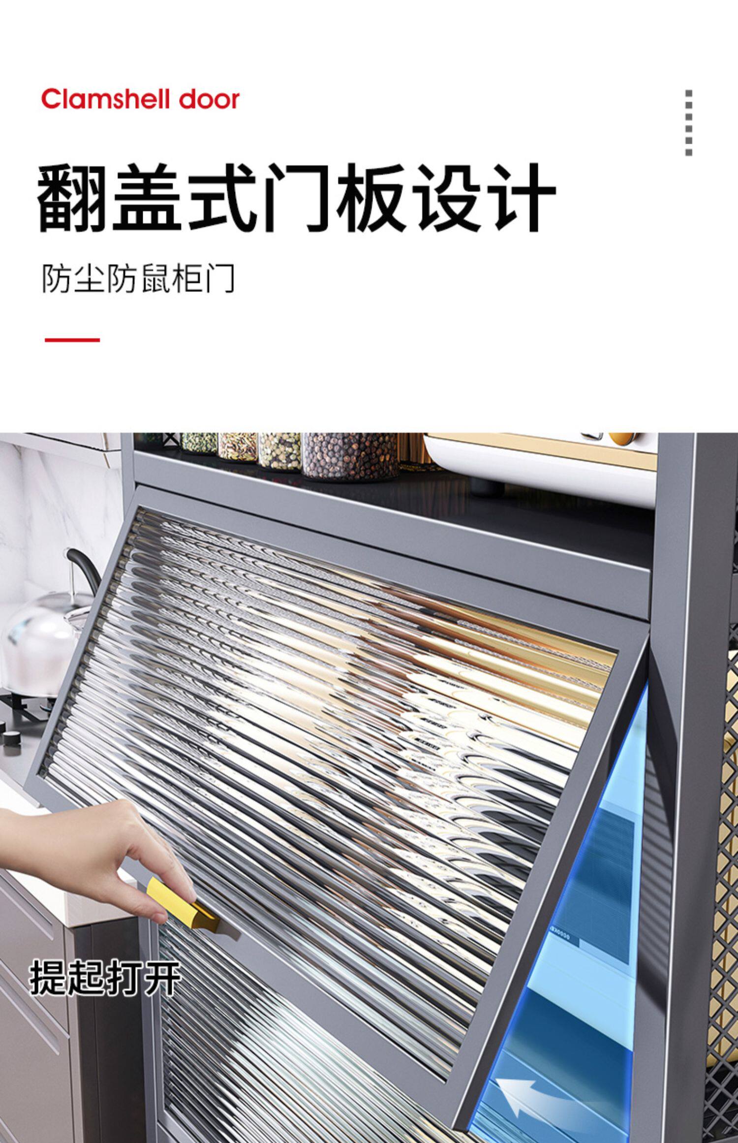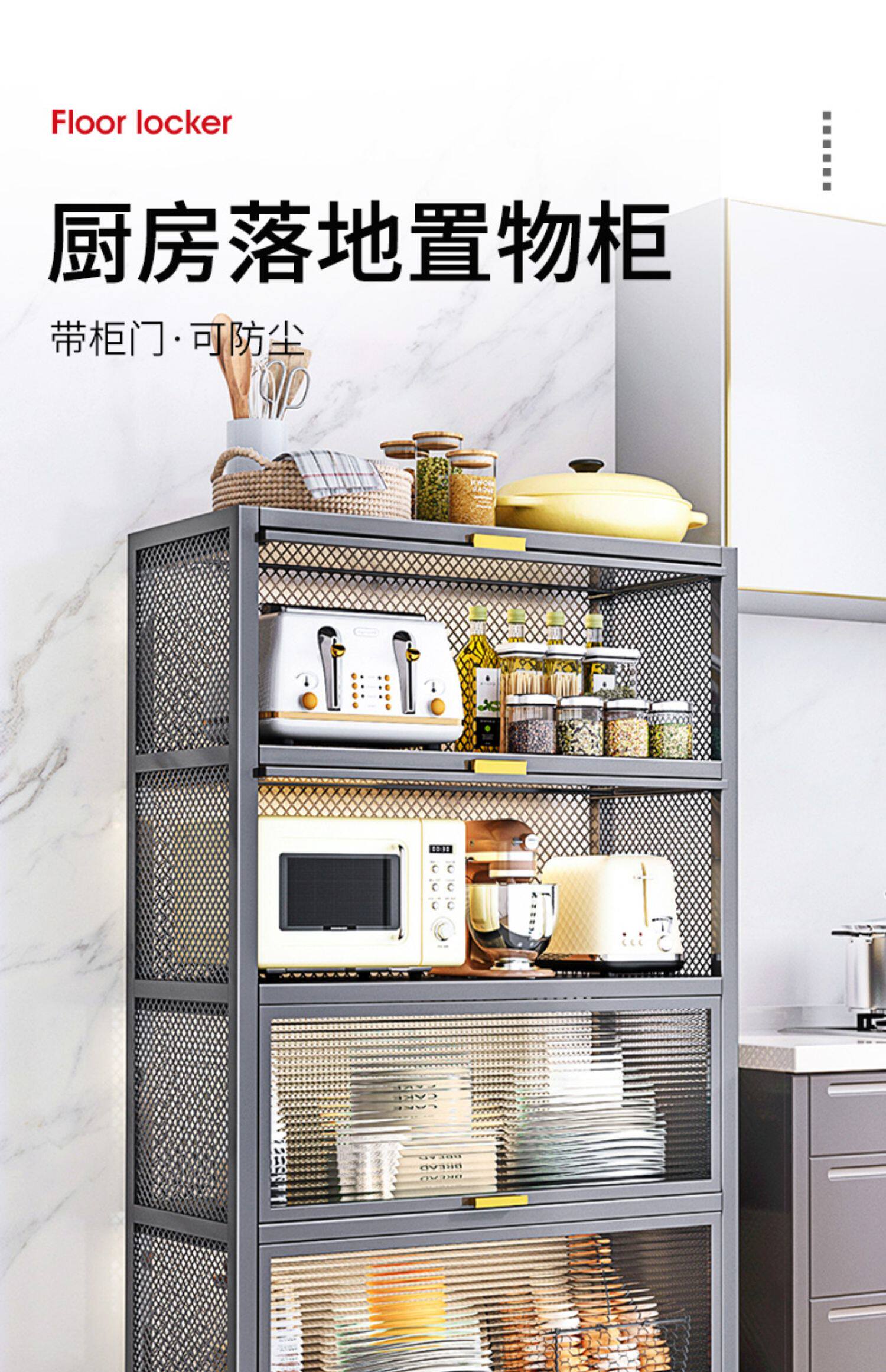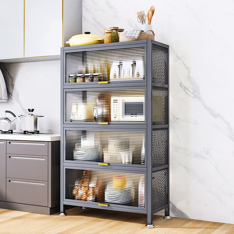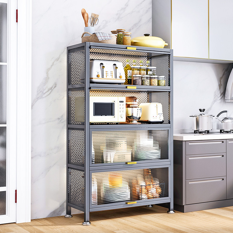 Кухонная полка расположена на полу с многослойным шкафом для хранения в микроволновой печи, хранения хранения и кладет шкаф шкафа шкафа