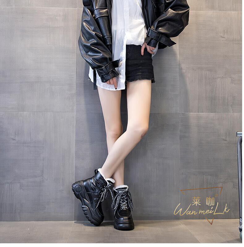 В 2023 году невидимое увеличение ультра -высокой каблуки на 11 см, хлопковые ботинки с хлопчатобумажными ботинками.