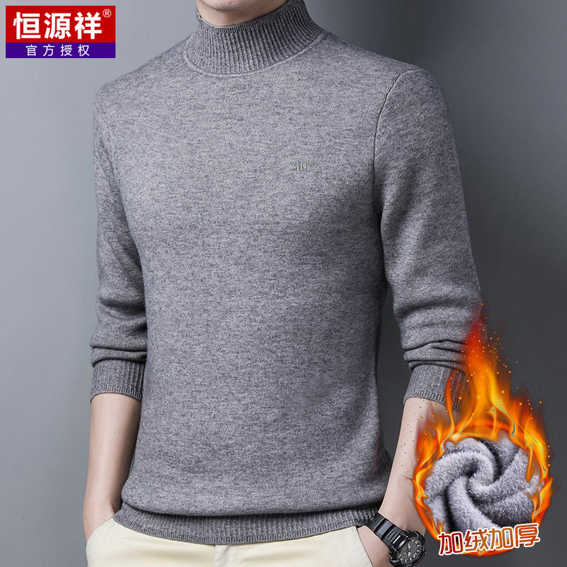 Утепленный шерстяной зимний цветной трикотажный свитер, высокий воротник, увеличенная толщина