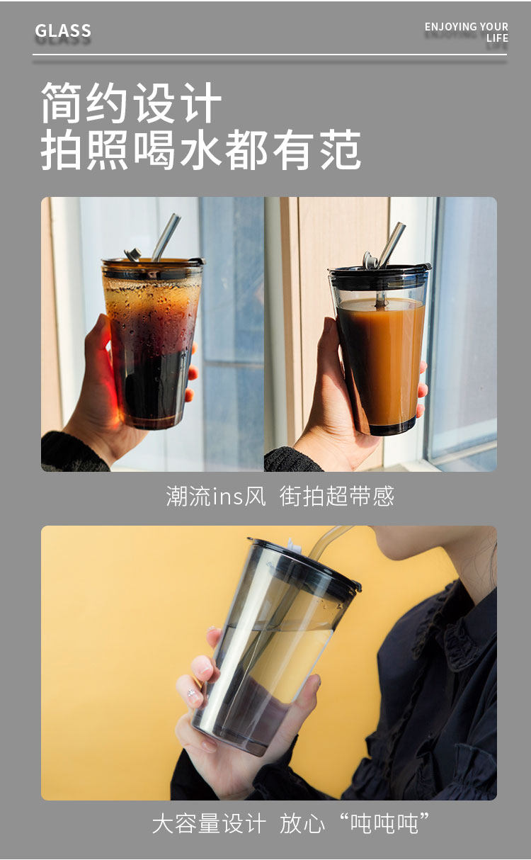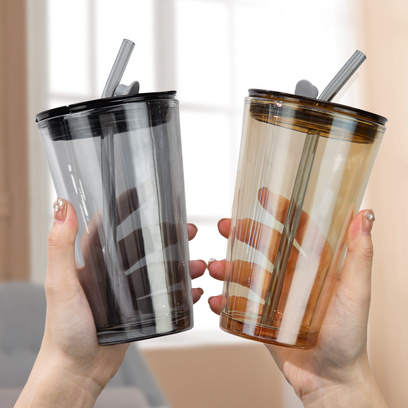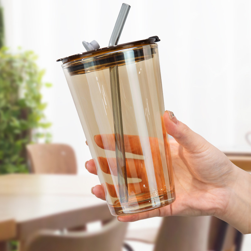 Стеклянная трубочка, вместительная и большая чайная чашка, высококачественная кофейная измерительная кружка для домашнего использования со стаканом