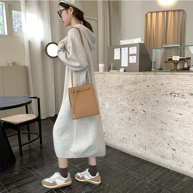 Длинная трикотажная толстовка с капюшоном, платье, демисезонная длинная юбка, подходит для подростков, средней длины, коллекция 2023