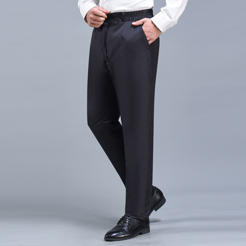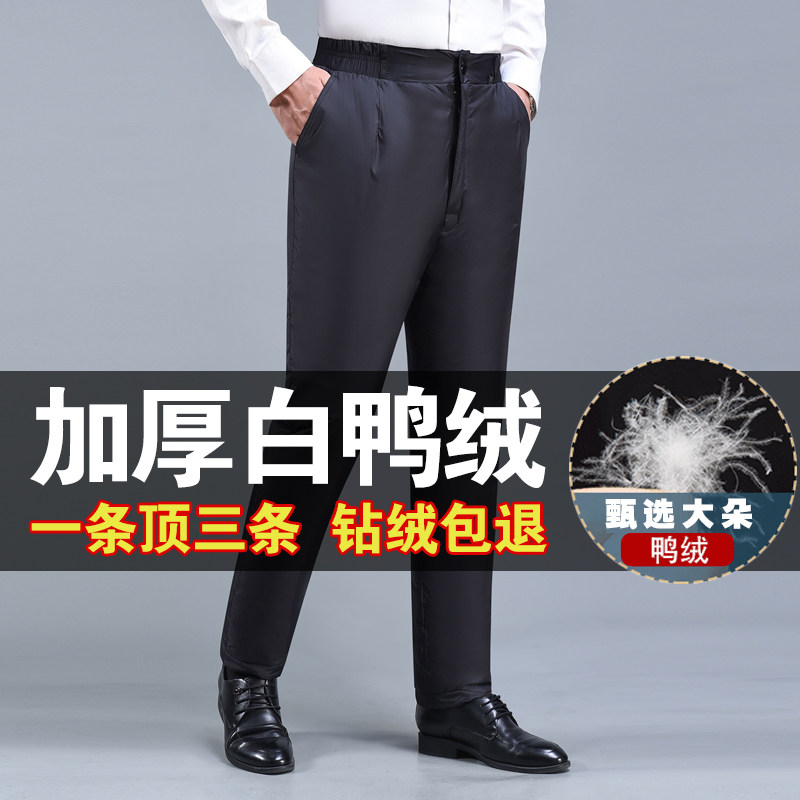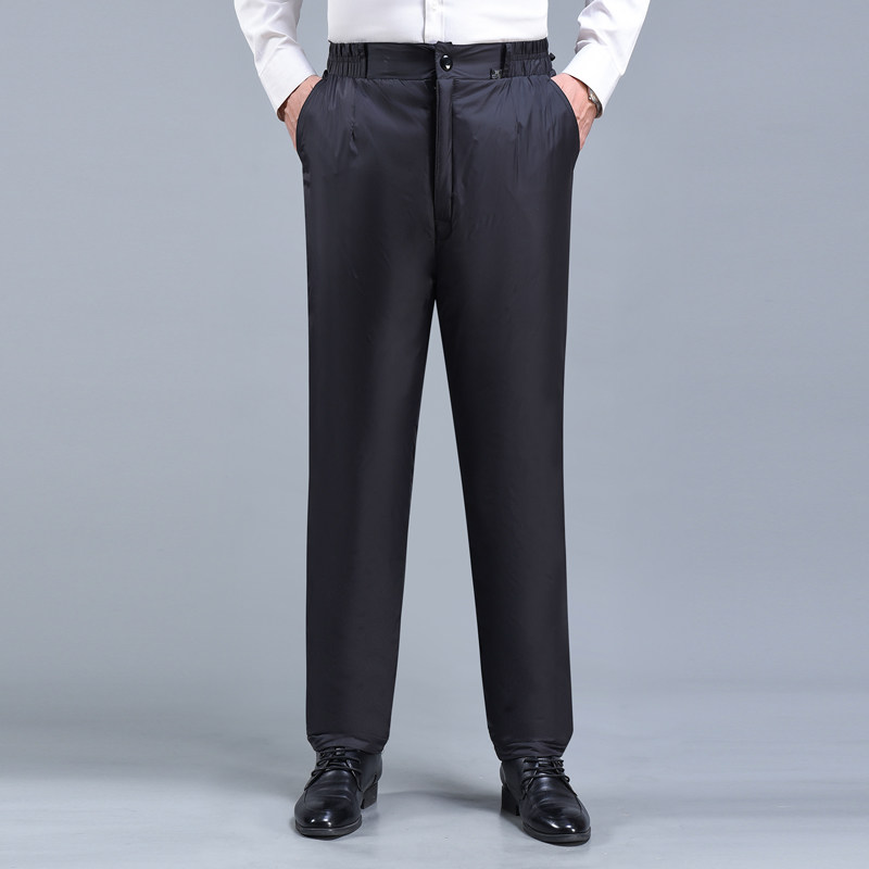 Штаны с пухом, зимние удерживающие тепло джинсы с начесом, для среднего возраста
