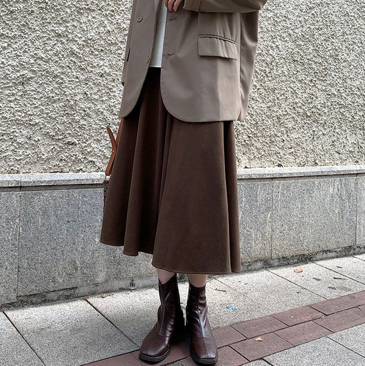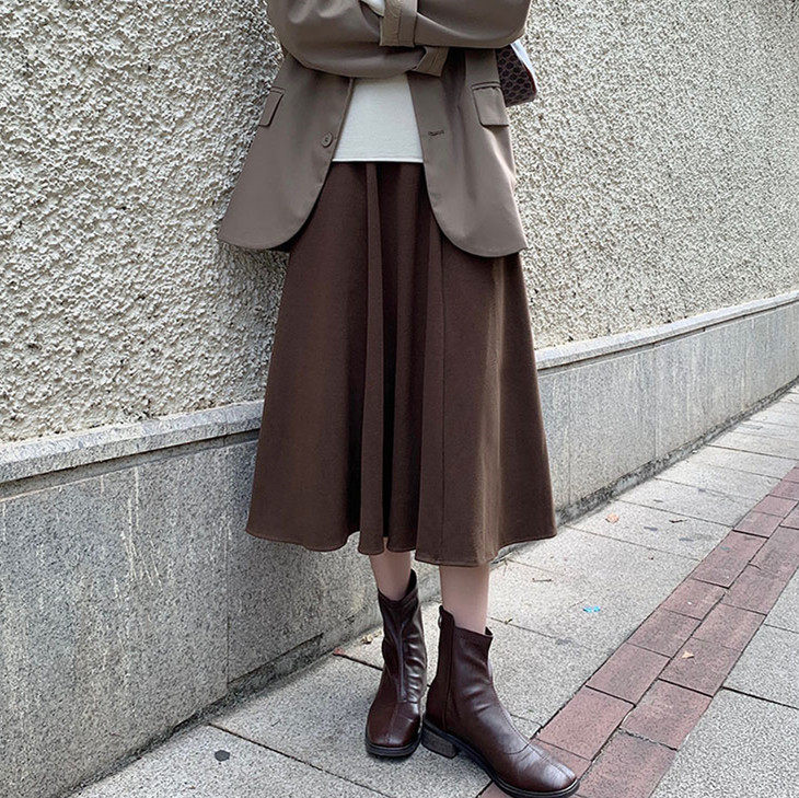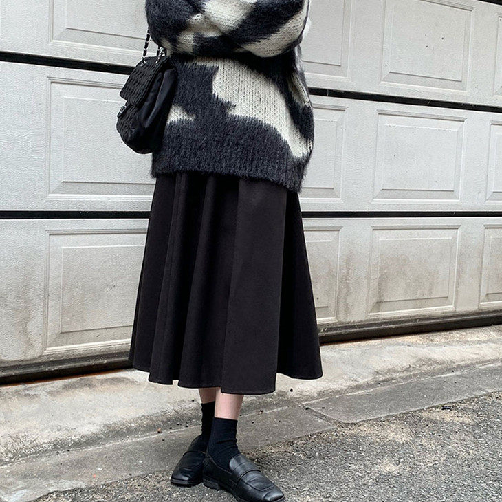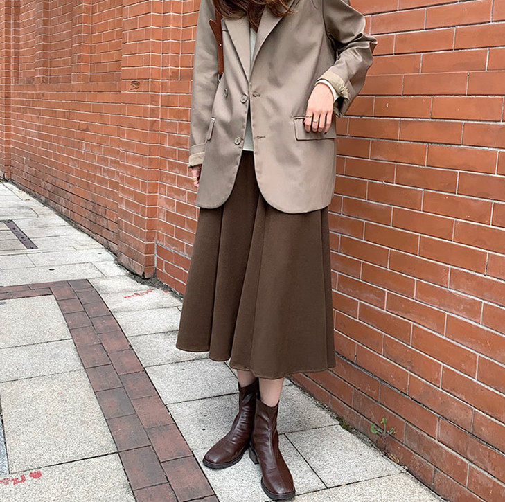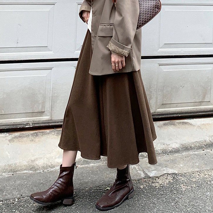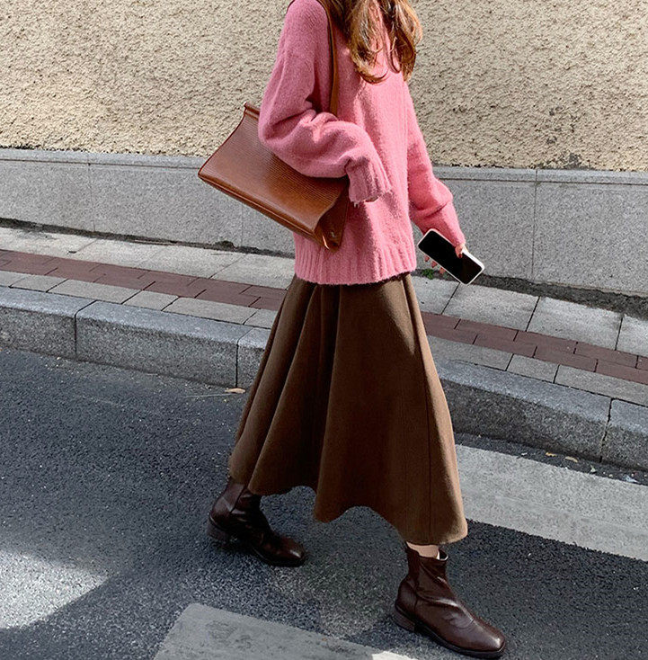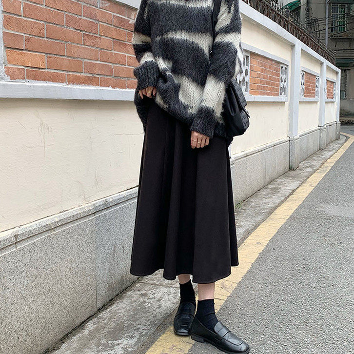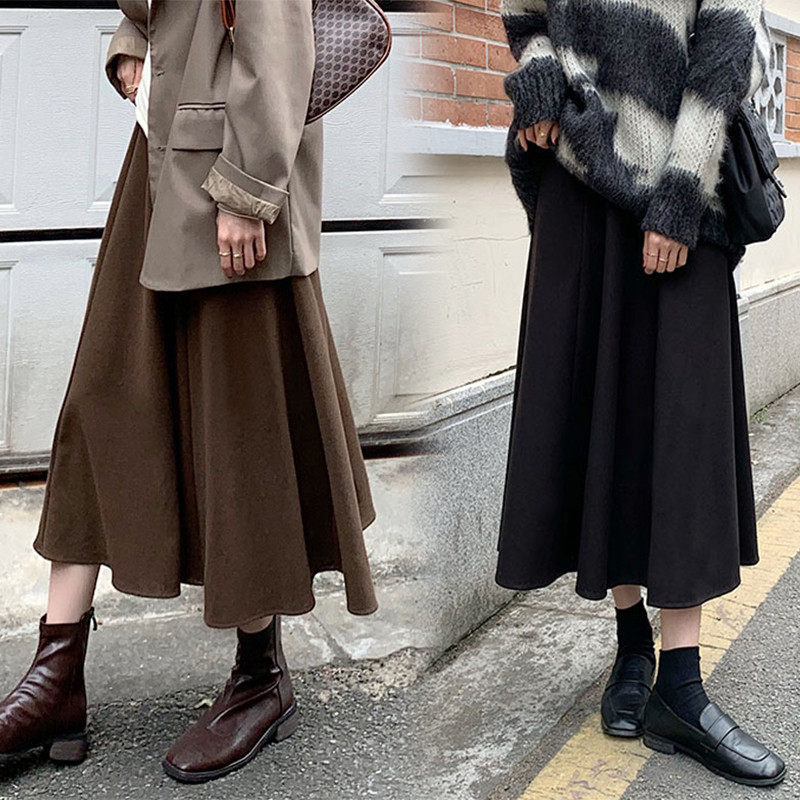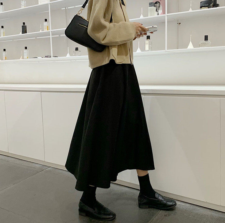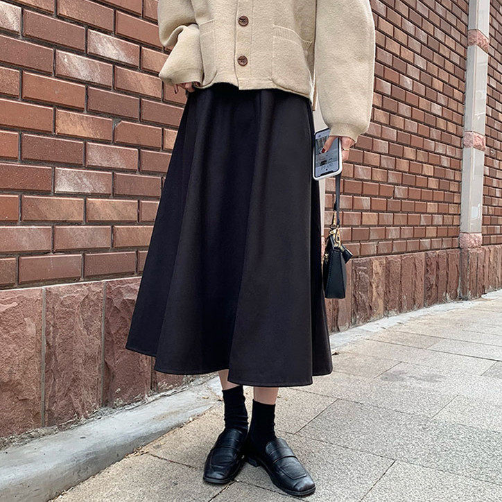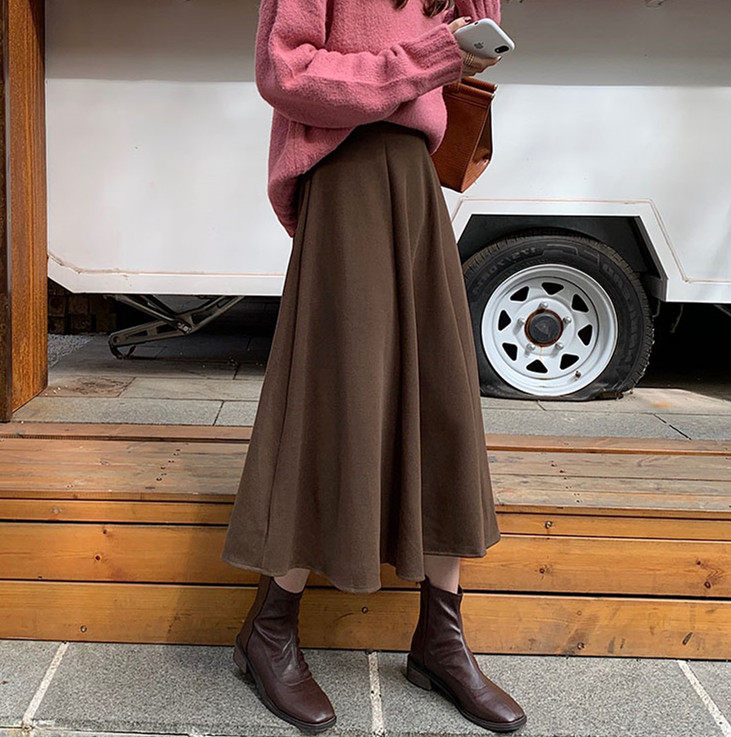 Шерстяное шерстяное пальто, демисезонный свитер, юбка, большой размер, подходит для полных девушек, по фигуре, А-силуэт