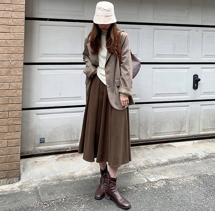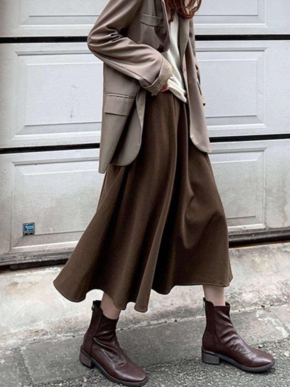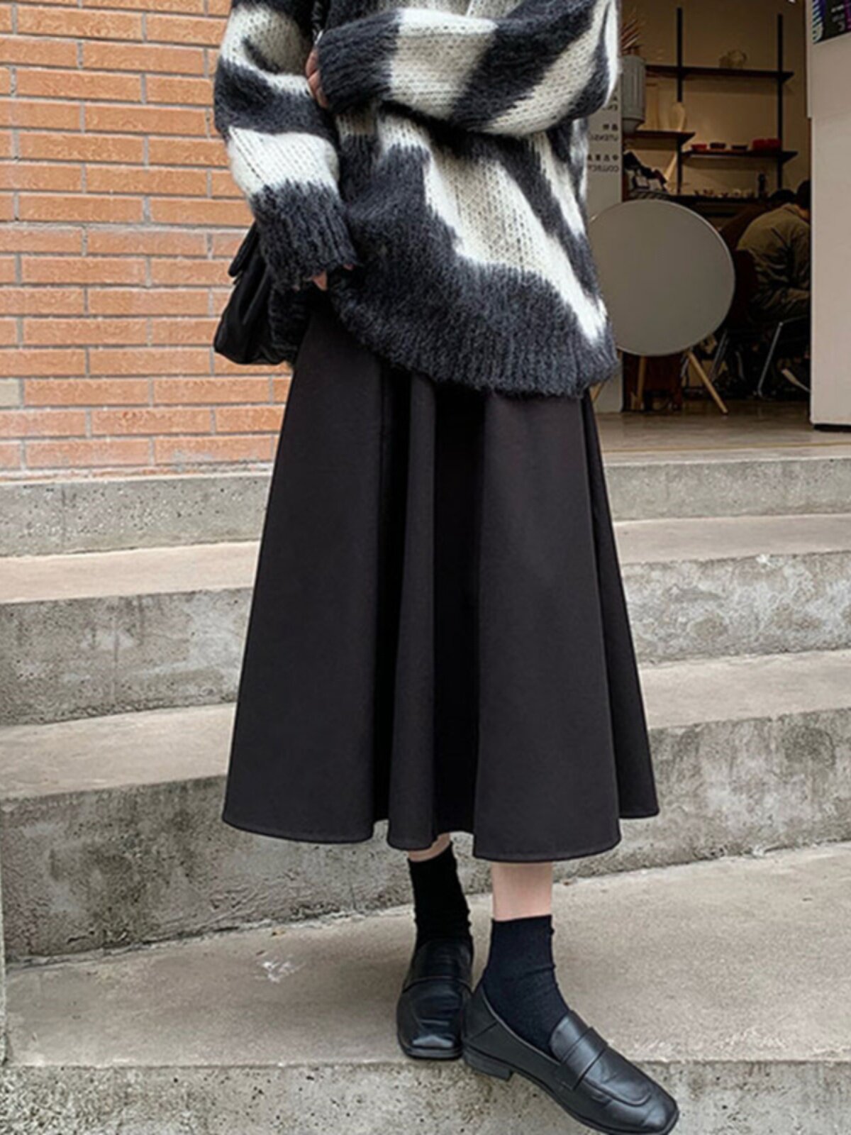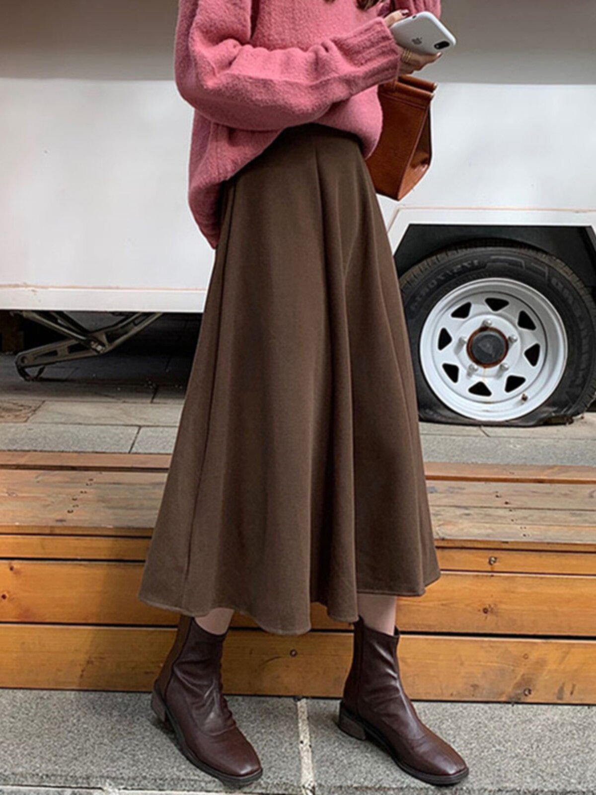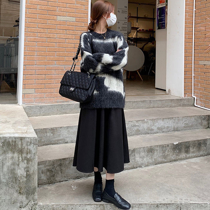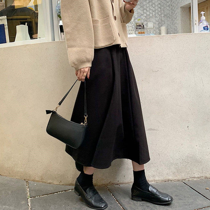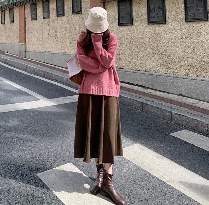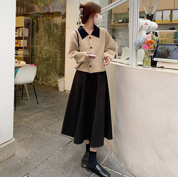 Шерстяное шерстяное пальто, демисезонный свитер, юбка, большой размер, подходит для полных девушек, по фигуре, А-силуэт