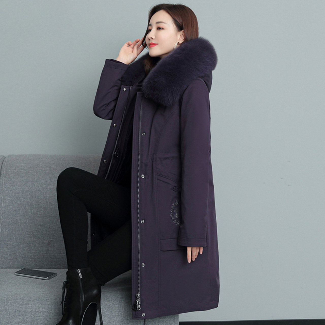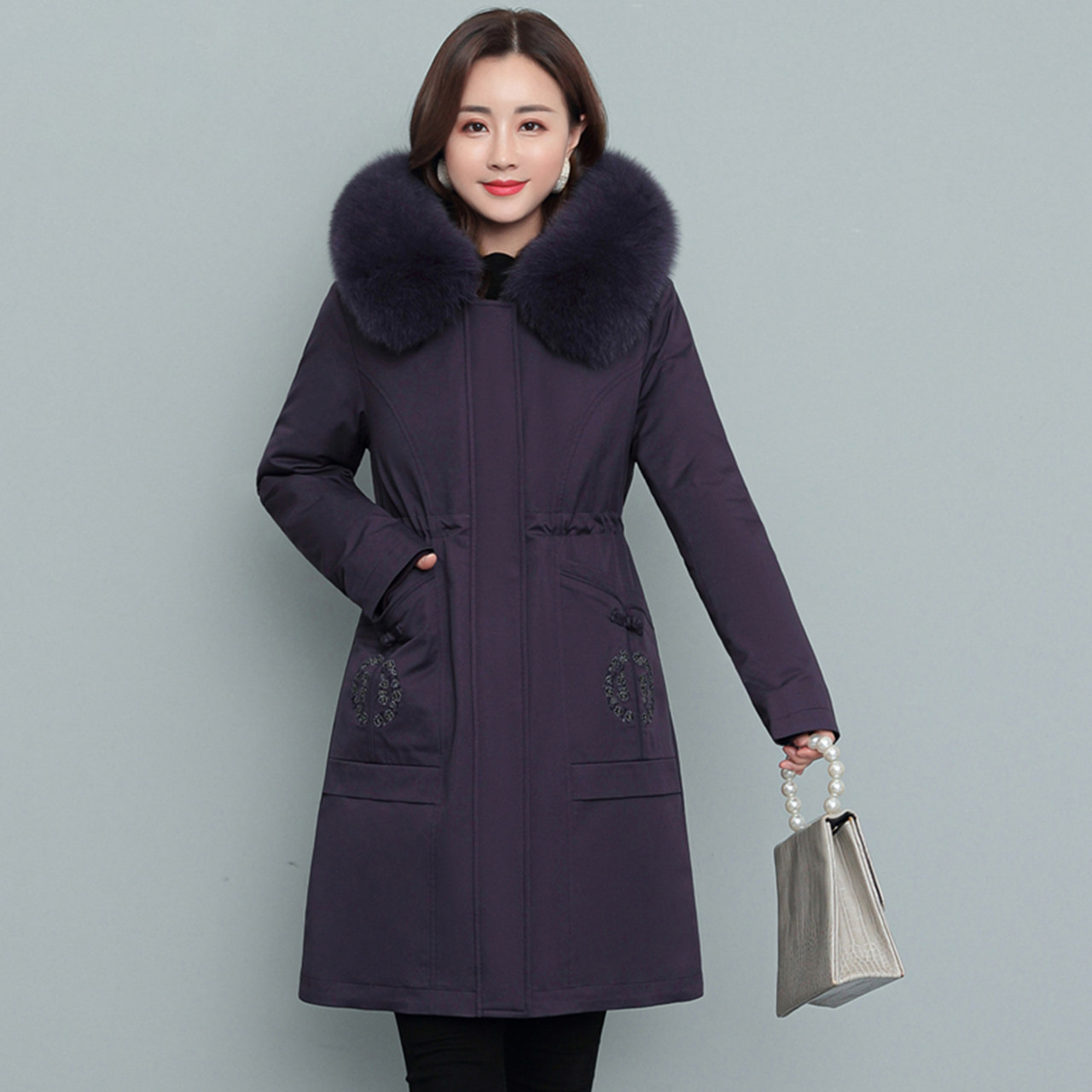 Демисезонный приталенный корсет, длинный пуховик, для среднего возраста, средней длины
