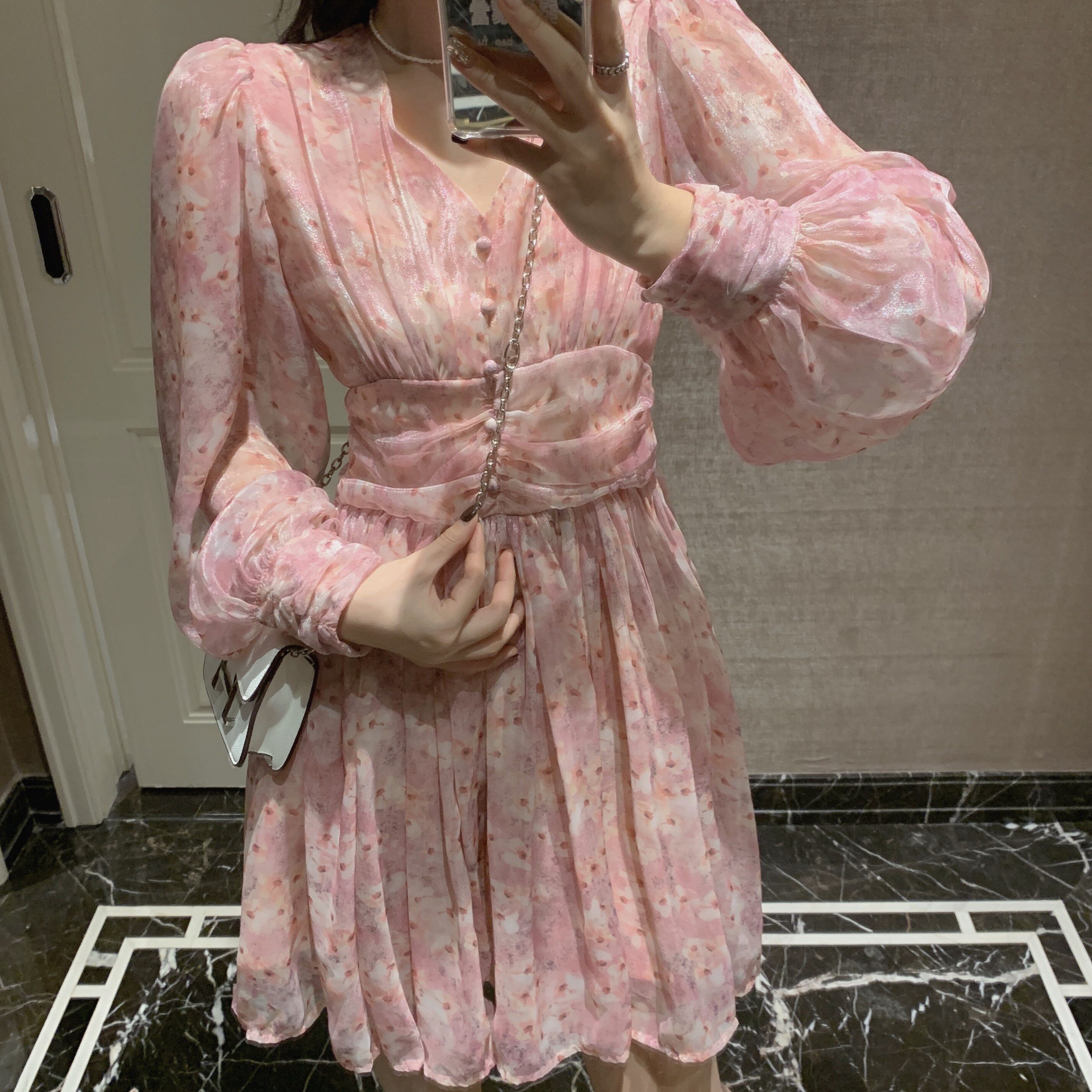 Шифоновая весенняя юбка, фонарь, милое платье, V-образный вырез, высокая талия