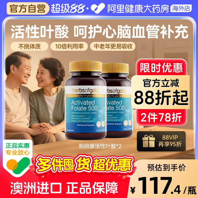 Herbsofgold Активная фолиевая кислота для людей среднего и пожилых людей, специализированная на гипоцистеиновой фолиевой кислоте и капсулах Likang 60*2