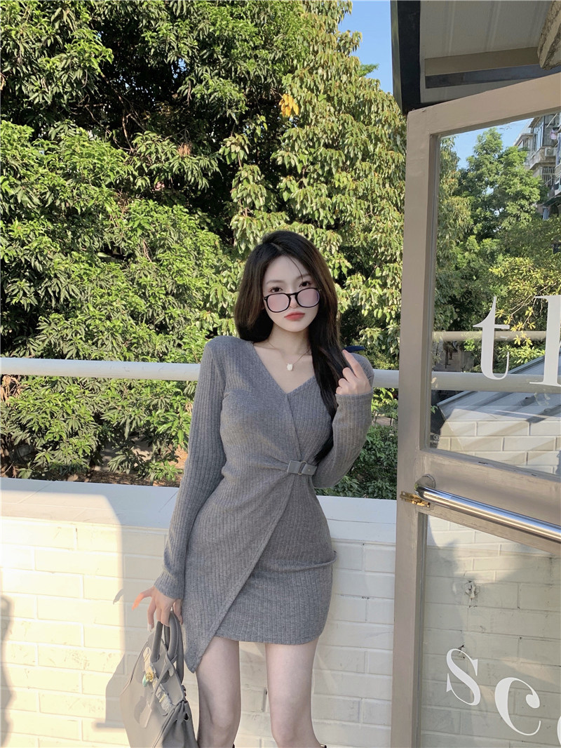 Осеннее трикотажное платье, приталенная мини-юбка, юбка, корсет, лонгслив, коллекция 2022, в обтяжку, с акцентом на бедрах