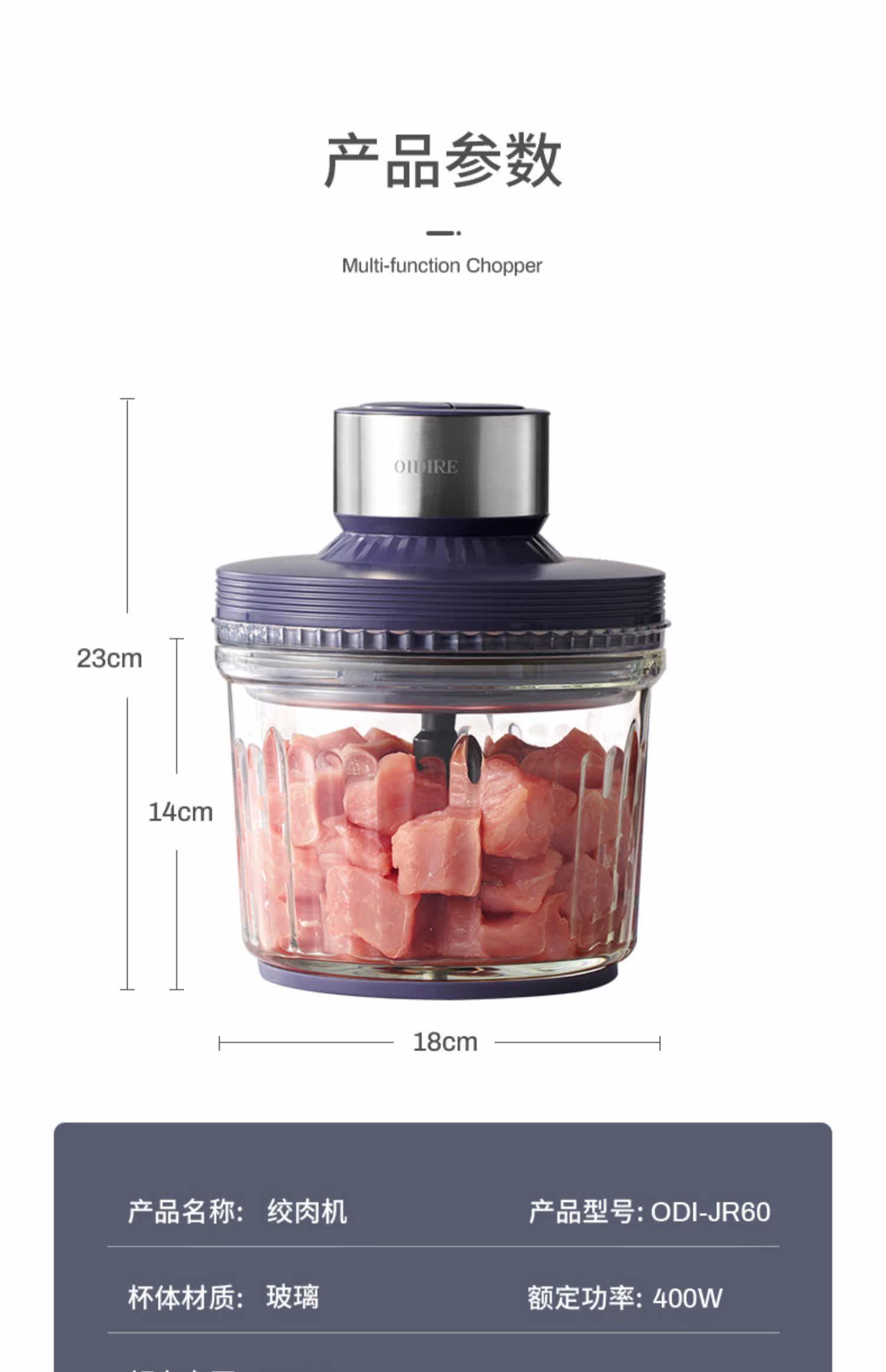 Немецкая шлифовальная машина Oidire Meat Meatkening Multi -Use Electric Meat фаршированная небольшая семья использует мясо для игры на фарнир и фрагментированное блюдо