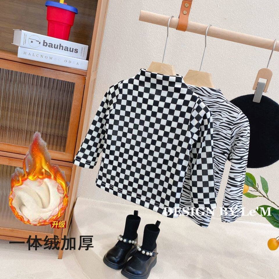 Базовая приятная телу бархатная демисезонная эластичная утепленная пуля, универсальная футболка, детская одежда
