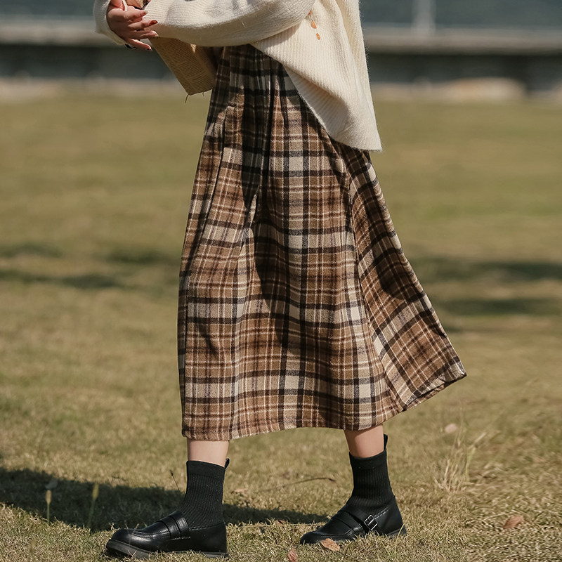 Ретро шерстяная демисезонная длинная юбка, увеличенная толщина, коллекция 2021, средней длины