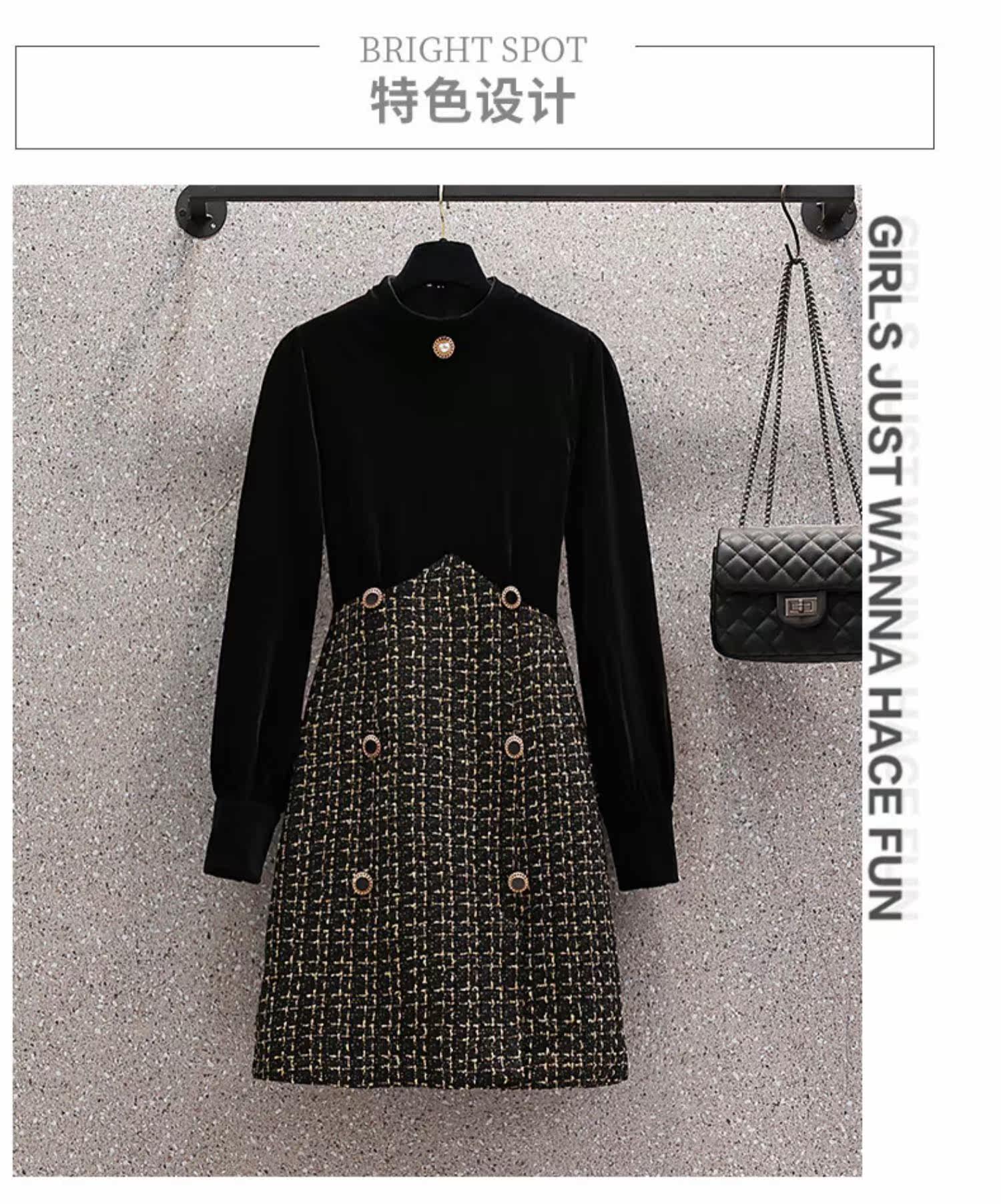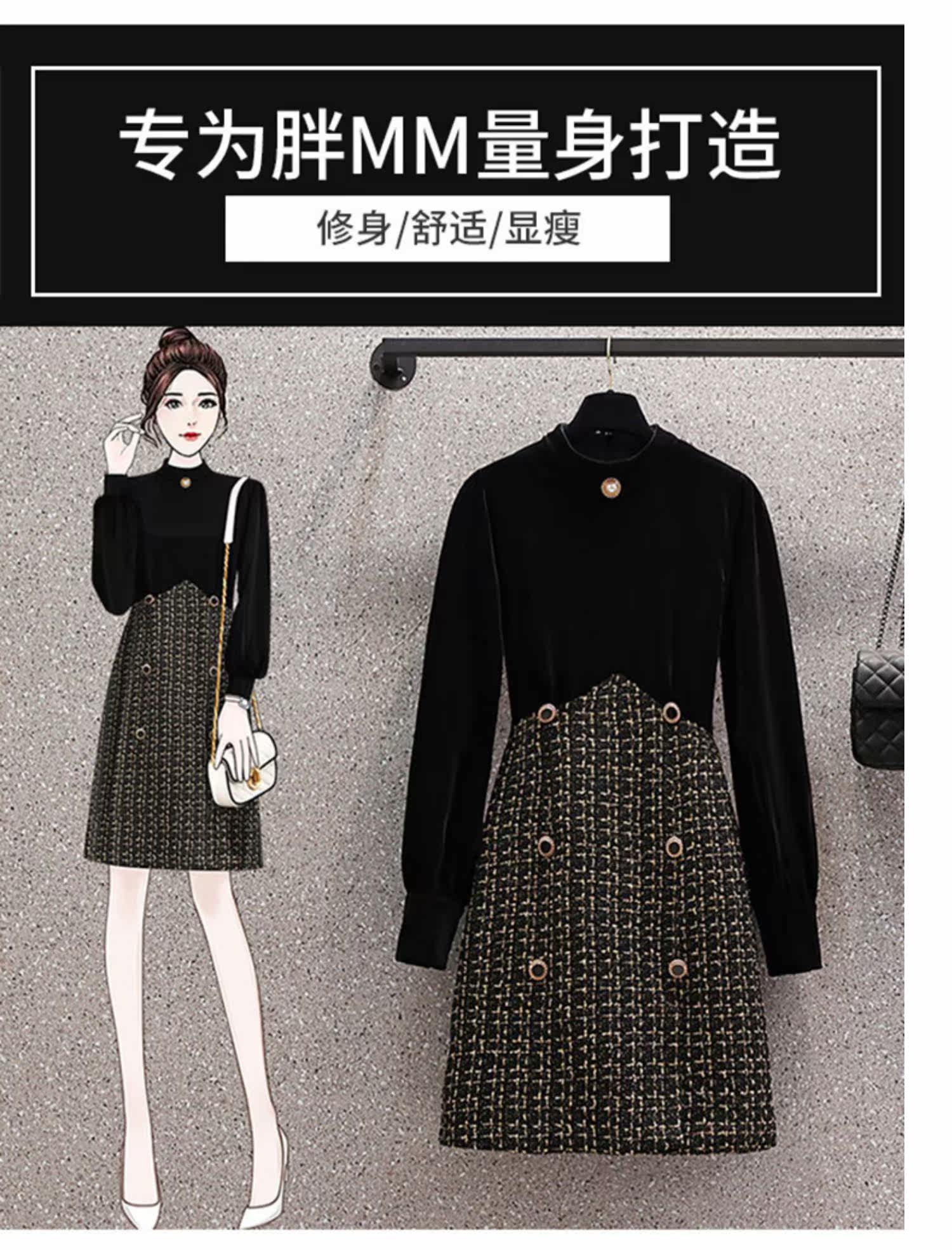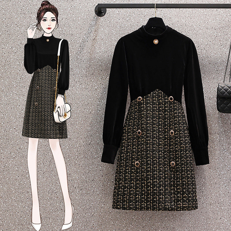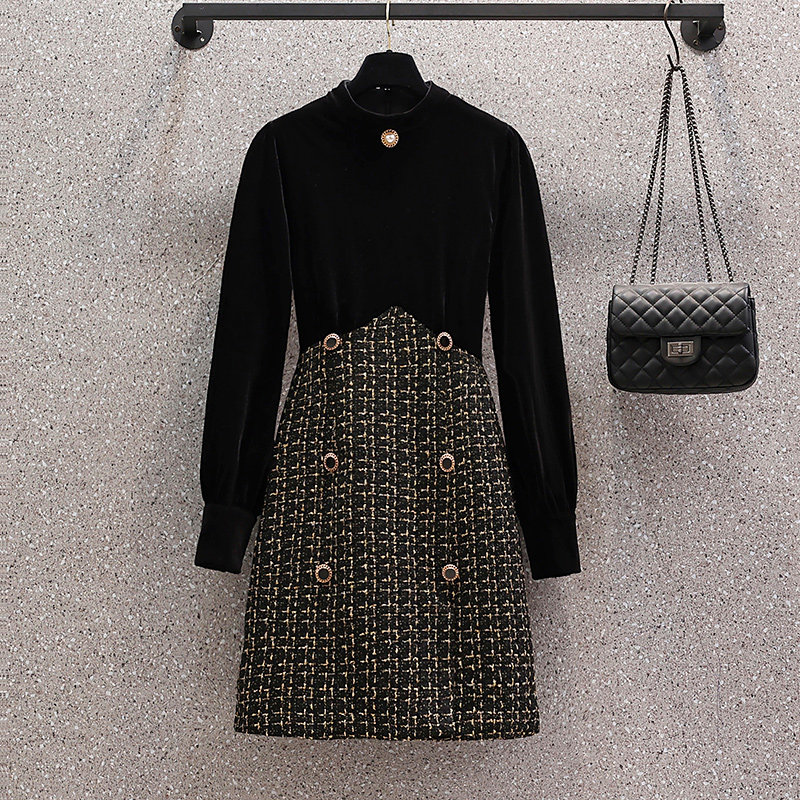Демисезонный корсет, бархатное платье, большой размер, коллекция 2021, подходит для полных девушек, по фигуре, в стиле Шанель